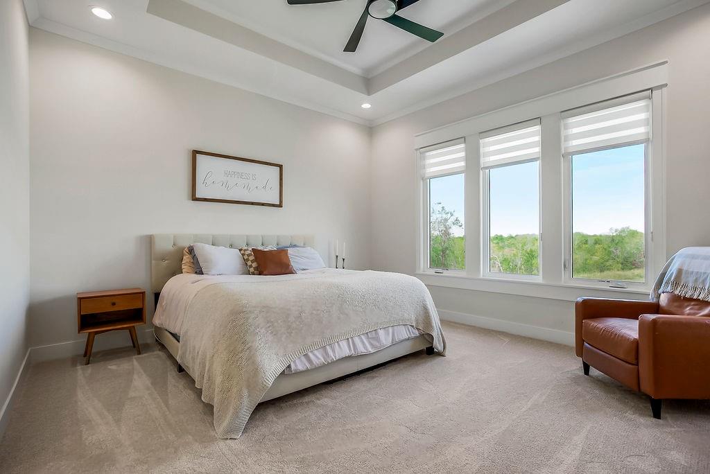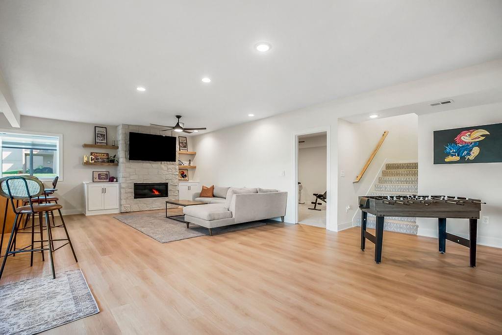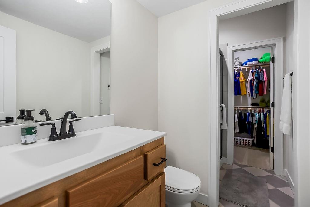 Why wait to build? This better-than-new 4-bedroom, 4-bathroom reverse 1.5 story home is perfectly situated on a quiet cul-de-sac lot with beautiful lake views, a 3 car garage and high-end upgrades throughout. Step inside to a bright, wide-open main floor filled with natural light, custom Hunter Douglas zebra shades, and a seamless flow from the spacious great room with fireplace to the chef-inspired kitchen. The kitchen boasts a large center island, quartz countertops, walk-in pantry, and abundant cabinetry—perfect for entertaining or everyday living. Just off the kitchen, you'll find a laundry room with built-ins and a utility sink for added convenience. A mudroom off the garage adds both function and style. Enjoy peaceful lake views from the covered, screened-in porch, accessible from both the kitchen and the primary suite. The luxurious primary retreat features a spa-like ensuite with a soaker tub, walk-in shower with 2 shower heads, and two large walk-in closets. Head downstairs to the fully finished walk-out basement, where you’ll find a wet bar with granite countertops, a spacious recreation room, and a bonus room currently used as a home gym. Step outside to a large patio and fully fenced backyard, ideal for relaxing, entertaining, or play. This home truly has it all—premium finishes, custom touches, lake views, and a prime location on a quiet cul-de-sac. Move right in and enjoy the lifestyle you’ve been waiting for!