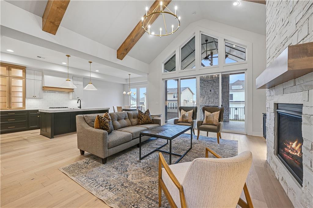 The Modern "Bayberry I" by JFE Construction is here! This 4 bed 3 bath Reverse is on a Walkout Lot! As you enter through the double doors to the grand foyer you are greeted by incredible natural light pouring in to the Great Room windows. The vaulted Great Room has a cozy fireplace and leads out to the covered deck with yet another fireplace! The kitchen has a large island, ample counter and cabinet space with a walk-in coffee bar counter leading into the walk-in pantry. A mudroom boot bench off the garage interior entry. The Primary En-Suite bedroom has a box-vault ceiling, amazing windows leading into the bathroom with double vanity, standalone tub, tiled shower w/ seat & walk-in closet. Main level laundry next to the Primary Bath. Bedroom #2/office, next to a full bathroom #2 with shower. The Lower Level boasts a luxurious Family Room w/ a walkout to the back yard to even more outdoor living. Entertaining in the Lower Level is equipped with a Wet Bar, Island/Bar all with ample windows to let all the light in! All in the coveted Heritage Ranch, A Lambie-Rieke Community, with Amenities Galore such as state-of-the-art pool, clubhouse, trails, pickleball. play area, half-court basketball, putting Green & ponds and so much more coming soon! This community provides a wonderful lifestyle and right next to the 1,238 Acre Heritage Park with Dog Park, Sports Parks, Golf, Lake, Trails and so much more! Contact Onsite Agents for Estimated Completion of homes on site, and design selections. Our Welcome Center Office is now open, located at LOT 65. Open 7 days a week! Renderings &/or images may show features and sq ft that are subject to change. Welcome Home to Heritage Ranch - one of the last NEW Home Communities in Johnson County! SPEC HOME is Under Construction with an Estimated Completion FEB 2026 on LOT 19. Check with Heritage Ranch on what decor selections can be made. Taxes and Sq. Ft are estimated. This is THE ONE!