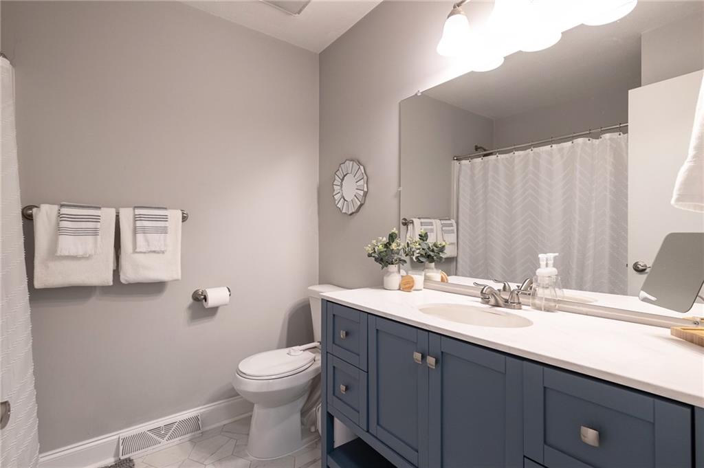 Step inside this beautifully updated raised ranch and fall in love with its open, airy feel! The kitchen is a showstopper with white ceiling height cabinets, a roomy pantry, stainless steel appliances, granite counter tops and a large island ready for family meals or entertaining friends. Cozy up by the fireplace in the family room, complete with fresh carpet. You’ll find 3 comfortable bedrooms and 3 full baths, plus a finished lower level that includes a non-conforming 4th bedroom — perfect for an office, gym, or guest space. The large fenced backyard offers plenty of room to relax or play, all just minutes from highways and shopping.