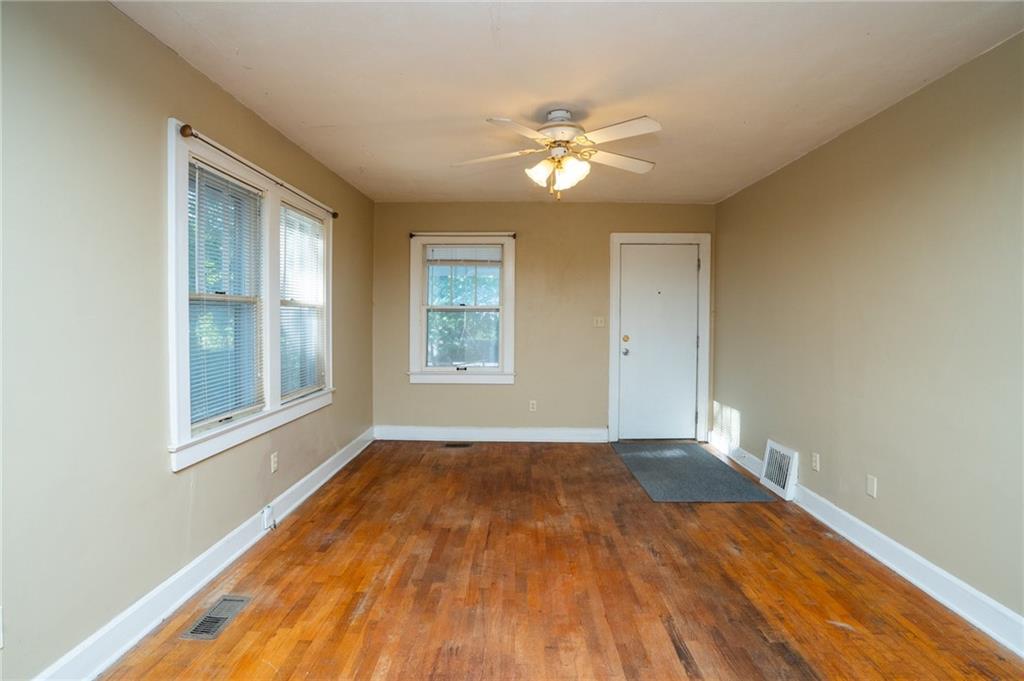 Located close to downtown and close to campus. Owner has owned for almost 20 years. Wood floors and unfinished basement. This home is ready to decorate and update with your choices. Located on quiet dead end street with mature trees and partially fenced yard. Upstairs bedroom area needs updated but would make a very useable space.