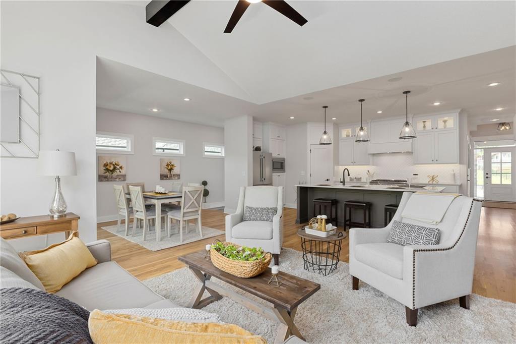 Welcome to Harding Homes popular "Laurel" model home. Upgrades galore on this beautiful treed greenspace lot. This homes has it all & more!! The vaulted ceiling and spacious open concept living invite you right in. White oak hardwood floors flow throughout the main level. Large island to entertain all of your family & friends. Custom cabinets, walk-in pantry, SS appliances & granite perfectly complete the kitchen. Primary suite features a large trimmed accent wall, oversized walk-in closet, and en-suite bath with dual vanities and walk-in shower. Primary closet connects to laundry room! Additional bedroom/office is also on the main level with full bath. Huge lower level with family room, 2 additional bedrooms, full bath & plenty of storage. Extra deep garage w/XL garage door, high efficiency furnace & AC. Doesn't get any better than this! Come tour it today!!