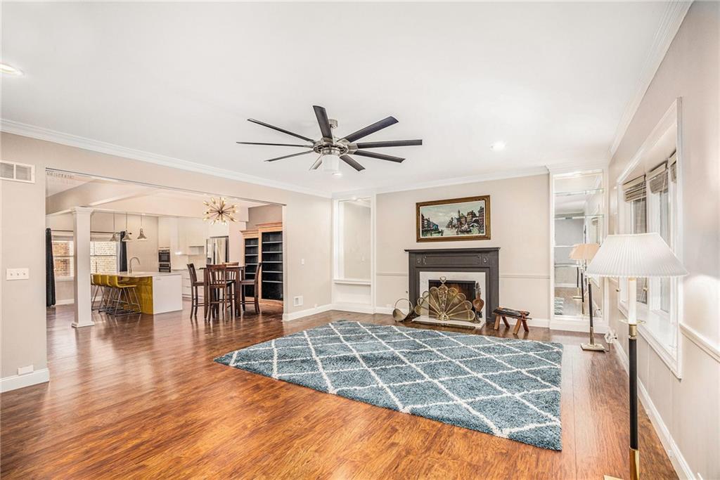 Possibilities abound in the heart of sought after Corinth Downs! This 1.5 story townhouse boasts close to 4000 square feet of luxury living space w/ 1 main level bedroom, (2) 2nd floor bedrooms as well as a 4th bedroom in the basement. Each over-sized bedroom features its own en suite bathroom, large windows allowing beautiful light in but still private. The open floor plan creates a spacious atmosphere perfect for entertaining guests or relaxing in style. The modern kitchen has a stylish island and upgraded fixtures & appliances. Enjoy the beautiful views from every window, as well as the cozy fireplace and high ceilings throughout. This home offers a very unique bonus! A finished attic space previously used as a soundproof music studio. To access, push a button & the electric stairs come down to the 2nd floor landing! There are so many opportunities for this space! From the living room, step out to the covered back porch that opens to a professionally landscaped yard w/ mature trees, or take in a beautiful day on your private front patio. This secure unit offers peace of mind w/ high brick walls & private entrance. Don't miss out on this rare opportunity to make this home yours & to be a part of this prestigious community. Neighborhood Notables:Compton Ct offers a private security gate allowing you to drive to JC Nichols Corinth commercial district w/o going on Mission Rd. 2 miles from Trader Joes @ Ward Parkway center, Sprouts, Consentinos, Corinth Square, Prairie Village Mall. 3 miles to Indian Hills, Mission Hills & KC Country Clubs. The pool is shaped in a luxurious barbed quatrefoil, patterned from Notre Dame cathedral in Paris, w/ meticulous landscaping & umbrella chairs/lounges for weekly cocktail gatherings and monthly themed parties at this resort style, sophisticated yet casual lifestyle. The other 3 courts join Compton Join neighbors at Mission Hills Country Club for their annual soiree. Home is priced for someone to come in and make it theirs!