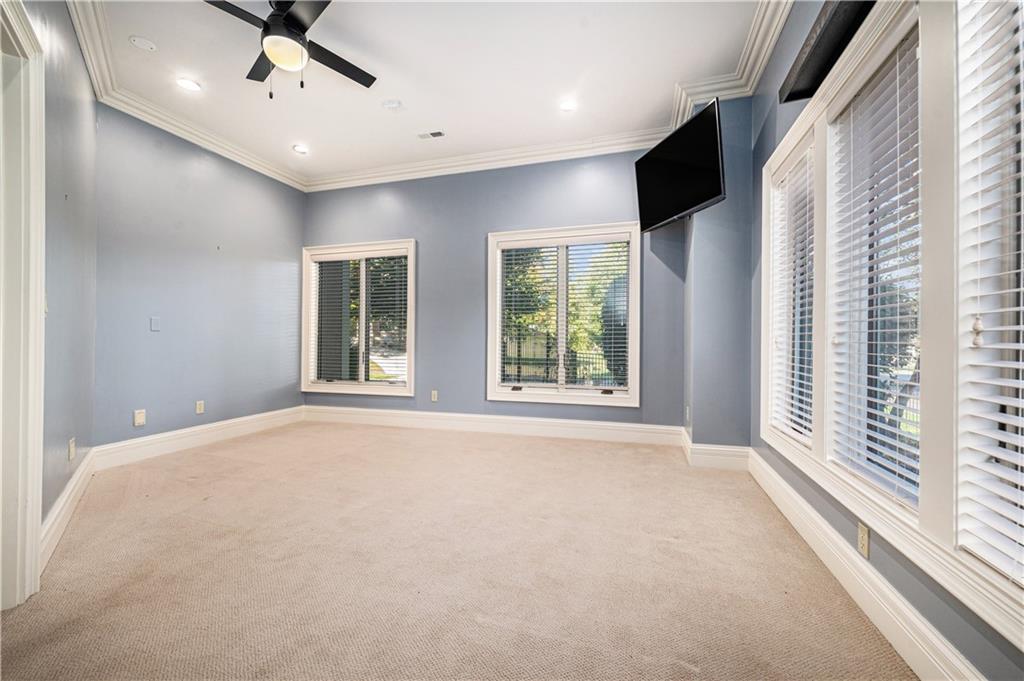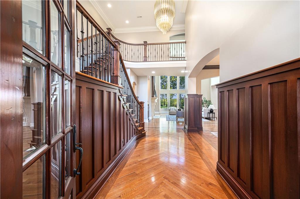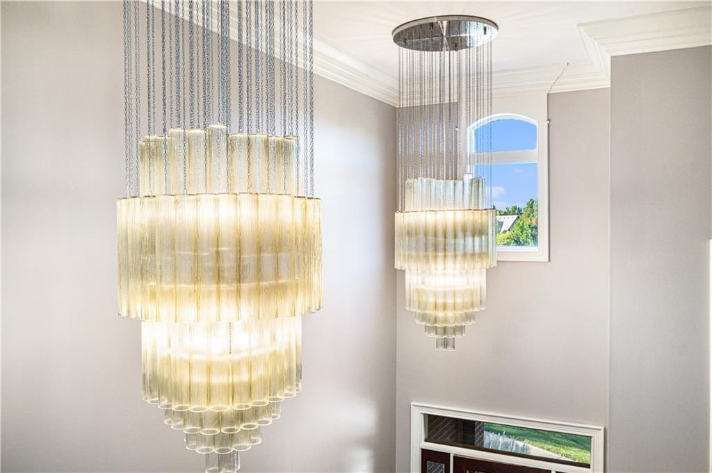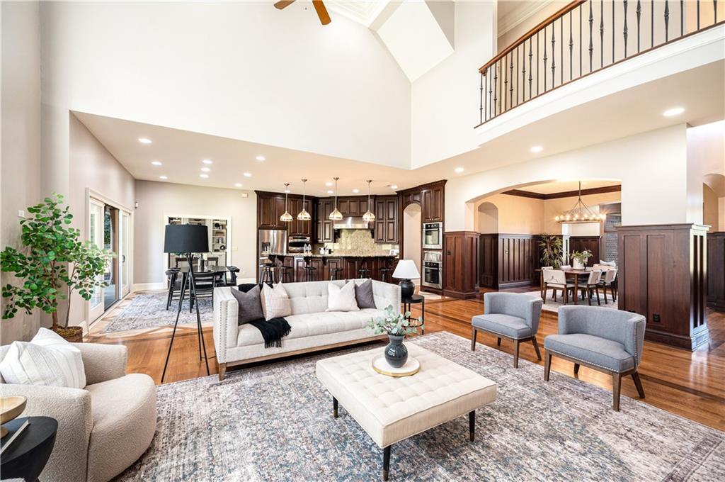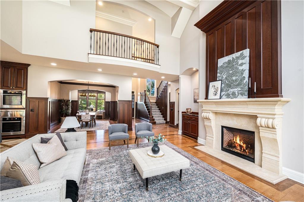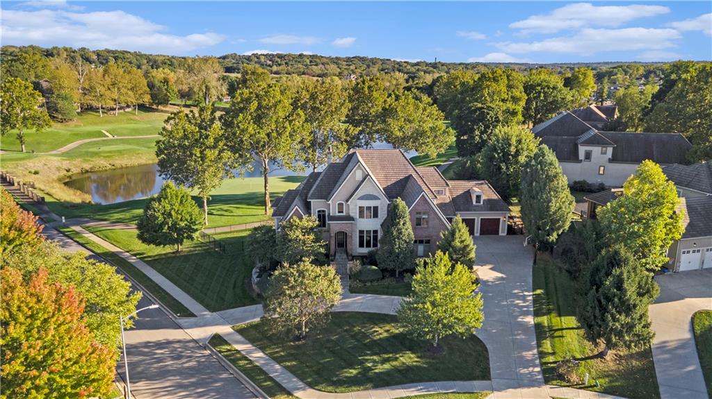 Stunning Custom 1.5-Story Estate at The National — Nearly 7,000 sq ft of Luxe Living! This extraordinary home features a 4-car garage and breathtaking floor-to-ceiling windows that showcase the best views of the golf course and water. As you step through the soaring entry, you'll be greeted by an open floor plan, designer chandeliers, exquisitely detailed trim, beautiful hardwoods, and crown molding. The gourmet kitchen is a chef’s dream, featuring exotic granite counters, soft-close cabinets and drawers, two new Bosch dishwashers, a Therador 6-burner gas range with griddle, Viking hood, Bosch double oven and warming drawer, a new refrigerator, beverage refrigerator, and a walk-in pantry. Slide open the glass doors to your outdoor oasis — a covered porch with a gas fireplace, expansive patio, and space to grill and relax. The main floor primary suite is a true retreat, complete with its own fireplace, frame TV, heated tile floors, a jetted tub, walk-in shower with glass surround, and walk-in closet. On the mail level there is also a study with a full bath, along with laundry area. Upstairs, you'll find three large bedrooms with walk-in closets, a bonus/gaming room, and second laundry. Walkout lower level is an entertainer’s paradise — an open recreation space, wet bar/second kitchen, wine cellar, fifth bedroom suite, second office or workout room with breathtaking green views, and unfinished storage space. Additional storage, or golf cart garage beneath the covered patio. A new 5-foot black aluminum fence with two gates provides privacy and security. All of this is nestled in the heart of KC’s premier country club, The National, featuring an exclusive 18-hole golf course, driving range, clubhouse, swimming pool, gym, tennis and pickleball courts, and a vibrant social scene. Plus, enjoy access to the second 18-hole course. Live the luxury lifestyle you deserve — this exceptional estate and community await!