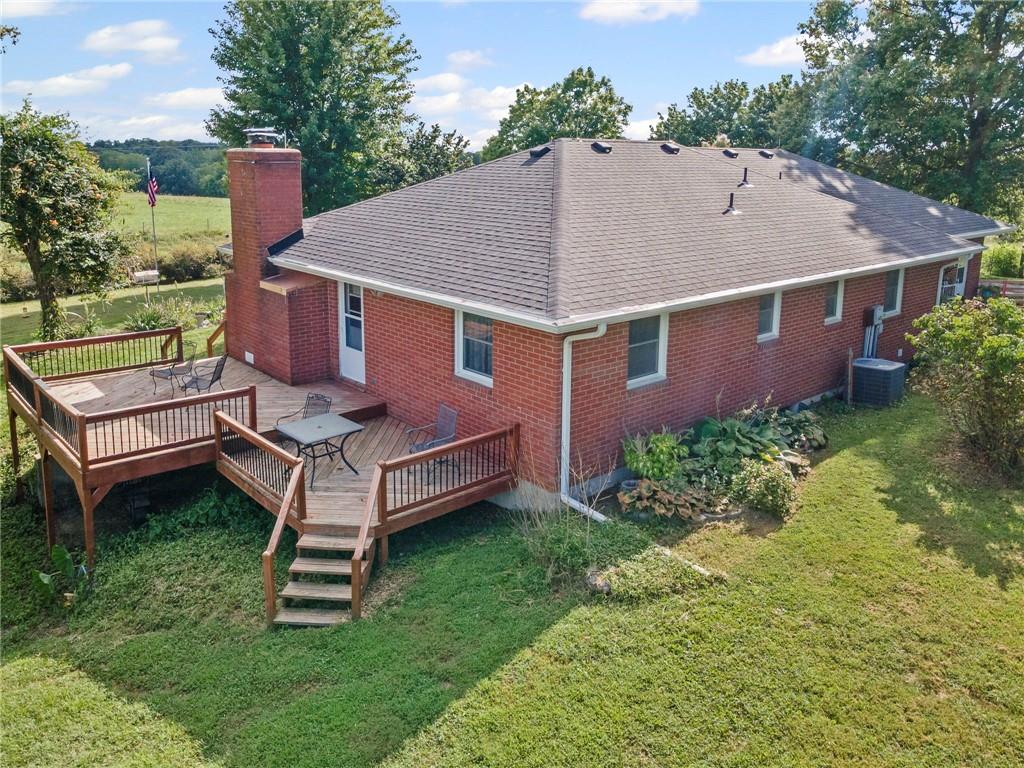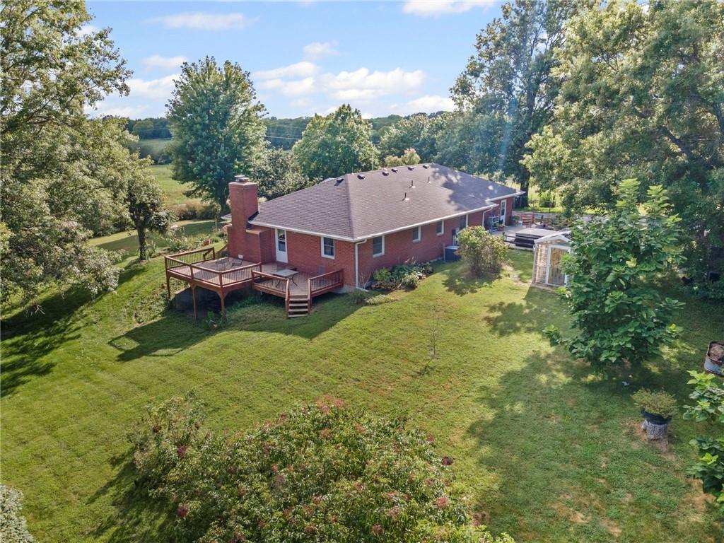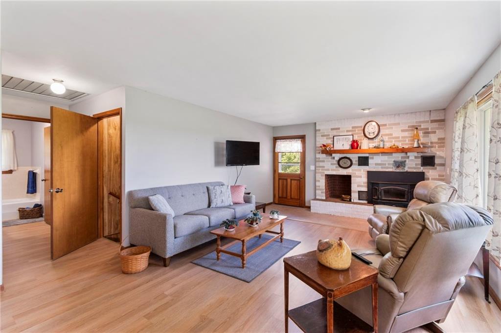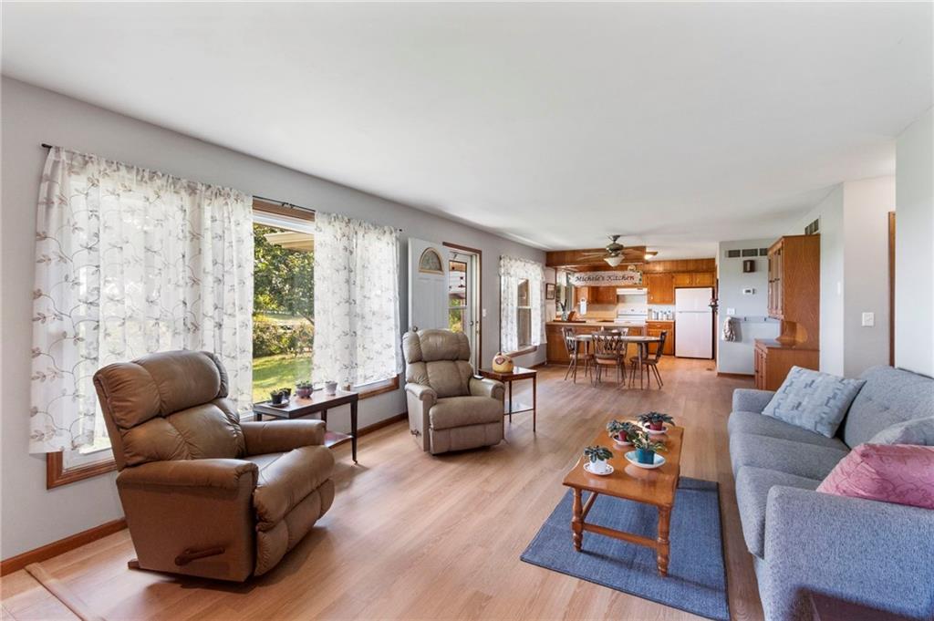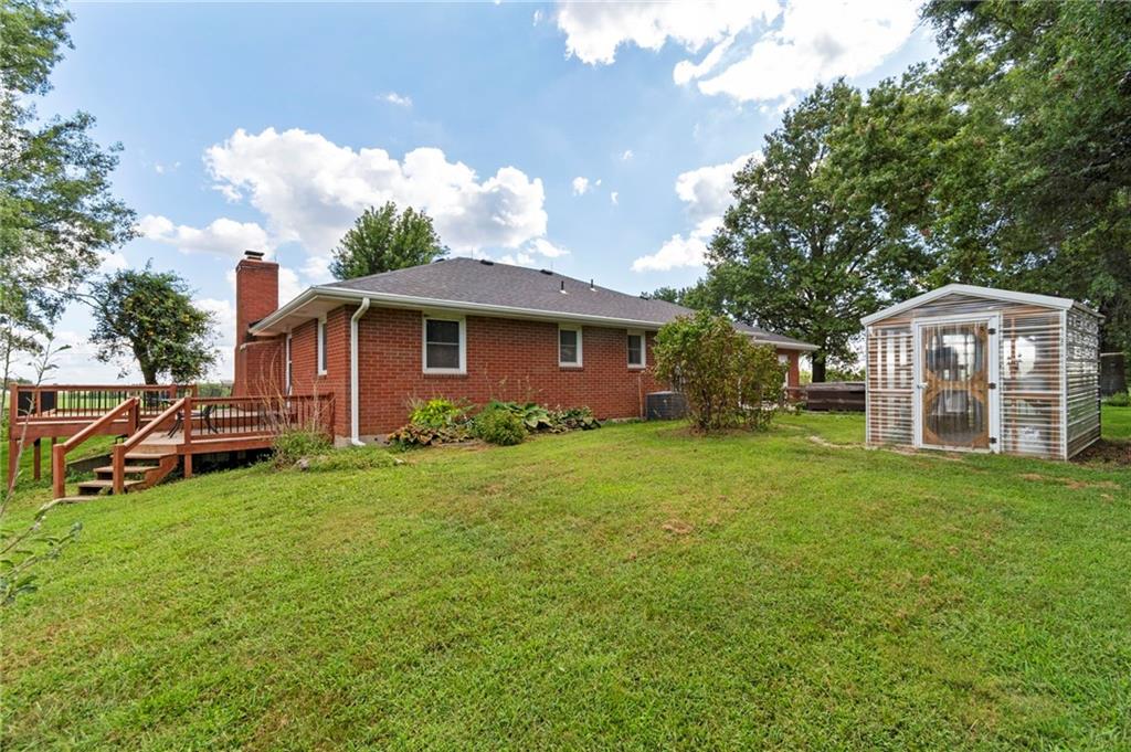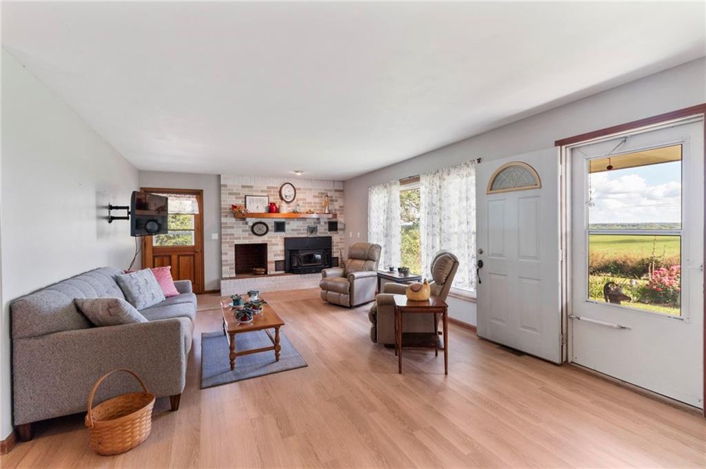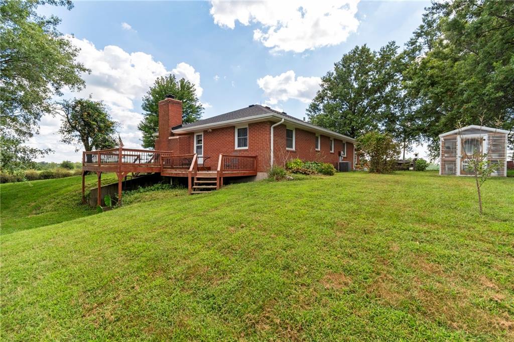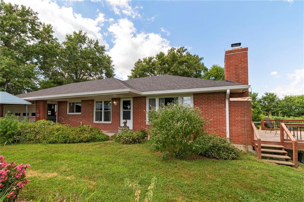 BACK ON THE MARKET THRU NO FAULT OF THE SELLER! All-Brick Home on 10 Acres with Stunning Views! Welcome to this immaculate all-brick home nestled on 10 acres m/l of prime pasture and hay ground. This beautiful property is perfectly suited for livestock, including cattle and horses, with fencing already in place, plus a pond. The home features a well-designed main level with a spacious kitchen/dining combo, a comfortable living room, 2 bedrooms, 2 full bathrooms, and a conveniently located laundry area. Fresh interior paint and lots of new LVP flooring! Downstairs, the partially finished walk-out basement offers a third non-conforming bedroom, a 3rd full bath, and a large family room—just waiting for your finishing touch (ceiling not finished). Forced air furnace but also a Quadrafire brand fireplace insert that heats the whole house! You'll love the oversized attached two-car garage, plus carport, a large machine shed, an additional detached 2-car garage, and a garden shed with electric! The main barn also has electricity. For the green thumb, there's a greenhouse equipped with electric and overhead heat, plus a perfect garden spot nearby. The setting is simply stunning, with peaceful views. Work from home - not a problem as seller has United Fiber for internet services! Don't miss this rare opportunity to own a beautiful, well-maintained home on small acreage in a picturesque location.