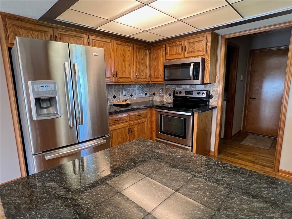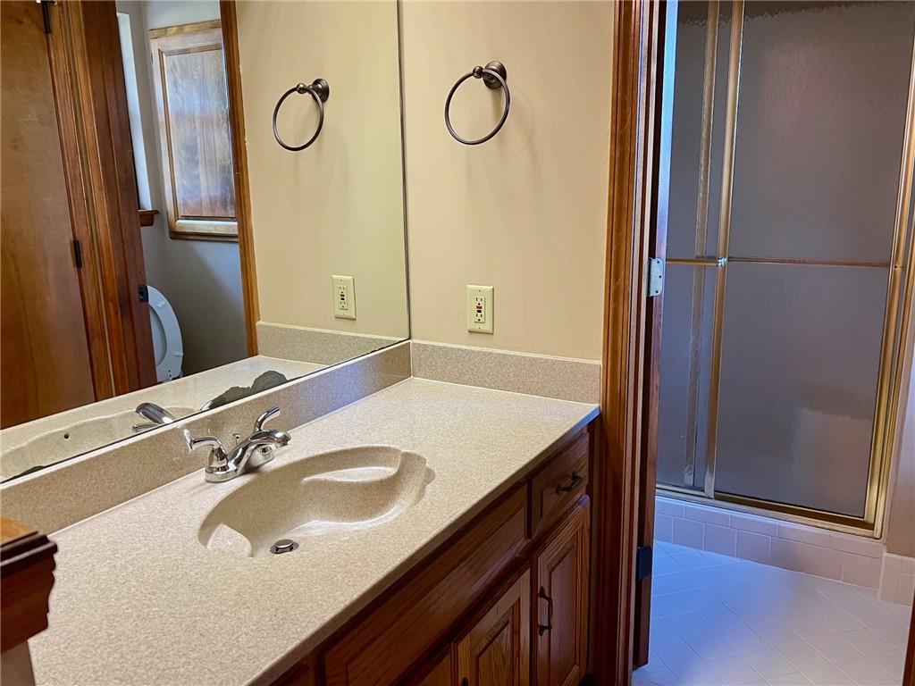 Beautiful setting with no close neighbors and views in all directions. Newly sealed asphalt driveway leads to garage with a separate stairway (another open stair in living room) leading to the unfinished basement, perfect for a handyman's workshop. Living room and master bedroom each have a wood burning fireplace. Separate deck off of new atrium doors in the master plus a larger deck off of the dining area. Even though the site is slightly less than 1 acre, the fact that there is a church on adjoining land and other homes along this road sit back off the road, give you remarkable privacy.