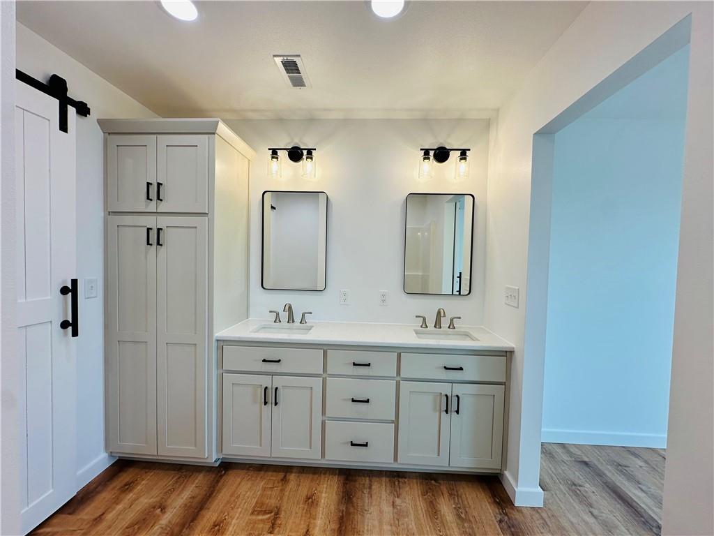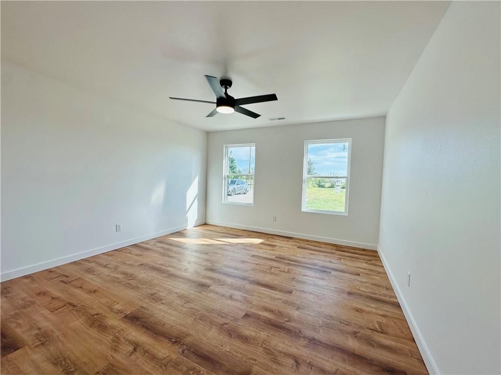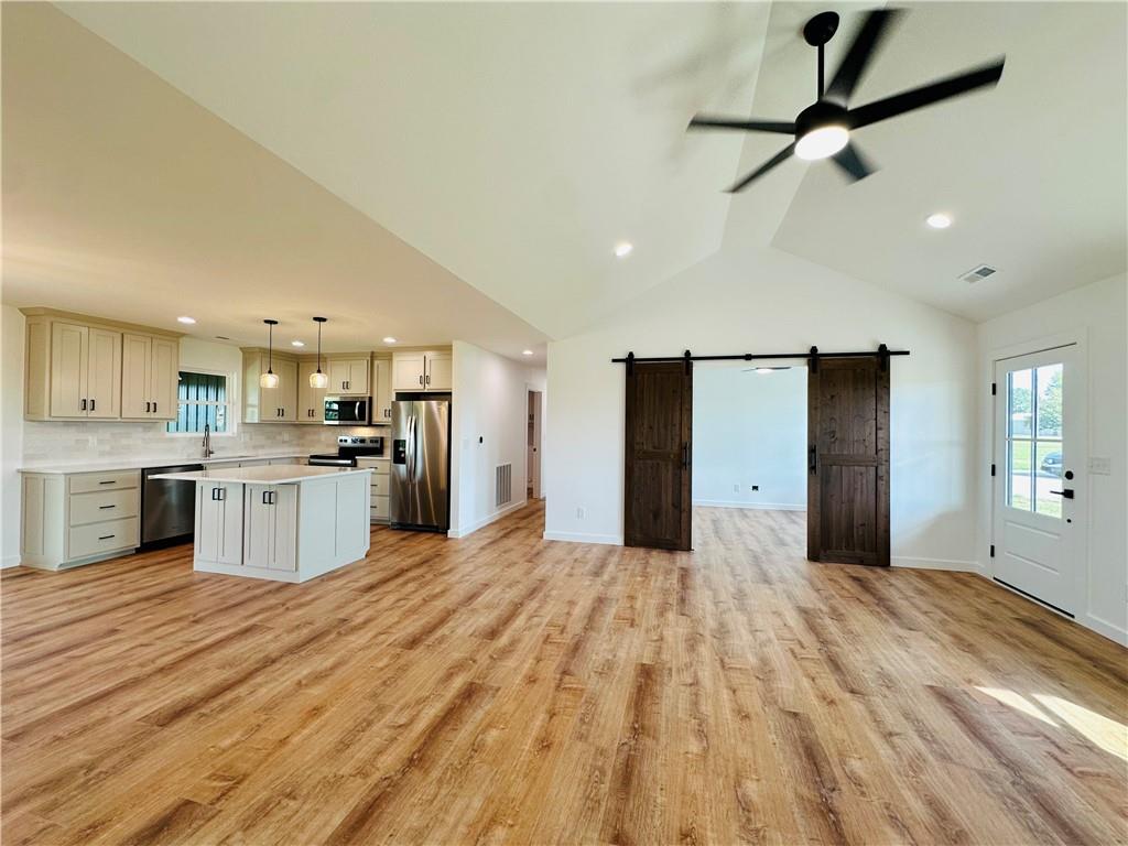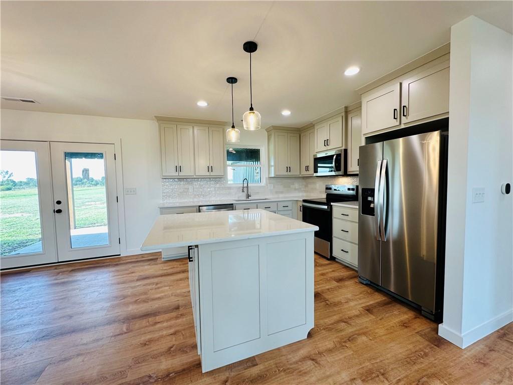 Welcome to this stunning, brand-new, custom-built home situated on two acres of picturesque prairie land. This slab home features a metal roof and siding with a partial stone front, offering low-maintenance living while combining modern design with serene country charm. Conveniently located on a paved road just two miles west of Highway 69 and ten miles north of Pittsburg, KS, the property provides both privacy and easy accessibility. Inside, the open-concept floor plan showcases a spacious living room with vaulted ceilings and expansive windows that frame unobstructed prairie views. The kitchen is equipped with custom cabinetry, quartz countertops, a striking backsplash, and a large central island, complemented by a complete four-piece stainless steel appliance suite, and a spacious pantry. Lifeproof luxury vinyl flooring and recessed lighting flow throughout the home, offering both durability and contemporary style. This home includes four bedrooms, one of which can serve as an office or flex space, along with two full bathrooms featuring custom vanities with quartz tops. The primary suite offers a generous walk-in closet, double vanities, and a walk-in shower, while each additional bedroom provides ample storage. A thoughtfully designed mudroom and laundry area, complete with custom cabinetry and a built-in hall tree, enhance everyday convenience. This property is completed by a spacious two-car garage and covered front and back porches, ideal for enjoying the scenic surroundings. With its high-quality construction, modern finishes, and tranquil setting, this property represents a rare opportunity for those seeking a new construction home in the country! Don’t miss your chance to make this home yours—schedule your private showing today! Note: listing agent is directly related to seller.