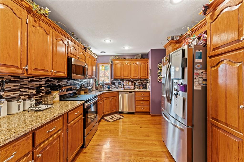Beautifully maintained home in a sought after subdivision, on a beautiful lake. Watch blue herons and turtles from your own back yard! Great views, fun fishing and paddle boating. Seller has meticulously maintained and loved this home and is leaving you with nothing to do but move in and enjoy. Pride shows throughout, from the pristine, lush green lawn, to newer ext paint, newer upgraded impact-resistant 50 year roof, newer upgraded over-sized gutters, upgraded battery back up sump pump with ap, security system, smart thermostat, smart exterior lights. Cute front porch, with sidewalk around to the back yard and a beautiful stamped patio and a covered patio area with magical bistro lights. Workshop with double doors out to patio, huge rec room in the walk-out basement and the pool table stays! So much basement storage and potential to make it into something fun, as it was once a children's play room and fort!! 3 bedrooms, 2 up 1 down, with an office, 3 bathrooms, comfortable living room with never used gas fireplace! Spacious kitchen with large eat in dining area that walks out to the private deck where you will love to sit and gaze at the lake and enjoy the wildlife it brings in! One of the cleanest garages around with painted walls and floors. Home has many smart items; security system, ring doorbell, smart lights, smart sump pump, smart thermostat, seller will help new buyer transfer them all! Many gatherings were enjoyed in this home and you will love to enjoy it too!! Great floorplan, great home, great neighborhood, great schools, beautiful view! Move in just in time to celebrate the holidays and make some memories!