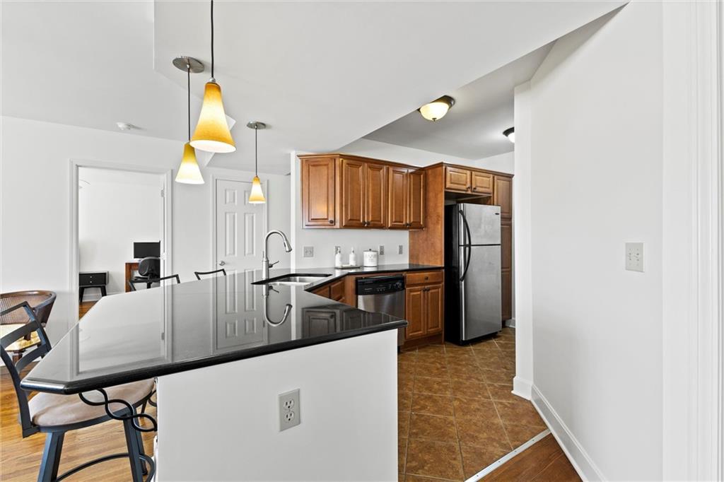Across from the JC Nichols Fountain and Café Trio, this Plaza condo puts you right in the middle of it all. And starting October 24, the new KC Streetcar will stop just one block from the building, giving you a free ride to Whole Foods, Union Station, the City Market, and beyond. Plaza living with streetcar access this close doesn’t come around often. This corner unit offers over 1,200 square feet with 2 bedrooms and 2 baths. The layout is one of the best, with a bedroom on each end for privacy and an open center that ties everything together, perfect for entertaining. The kitchen features granite counters, stainless steel appliances, plenty of storage, and bar seating, opening to the dining room and spacious living area. Extra windows fill the space with light, and in-unit laundry means you never have to leave your condo to get it done. The unit comes with gated parking and a dedicated spot, an oversized storage unit, and low HOA dues that cover water, gas, snow removal, and more. Building amenities include a common party room and a shared balcony with tables, chairs, a grill and more. Units in this building don’t hit the market often, making this a rare opportunity in one of the city’s best locations.