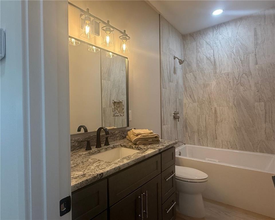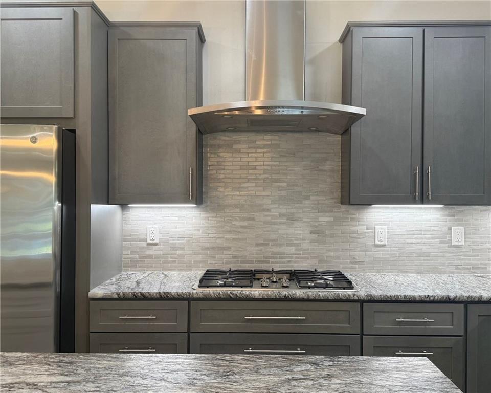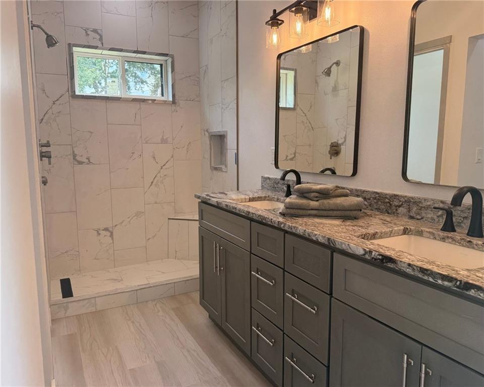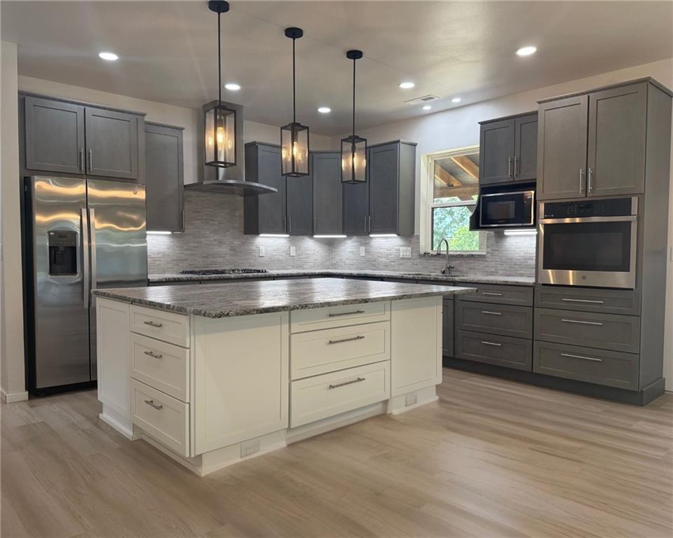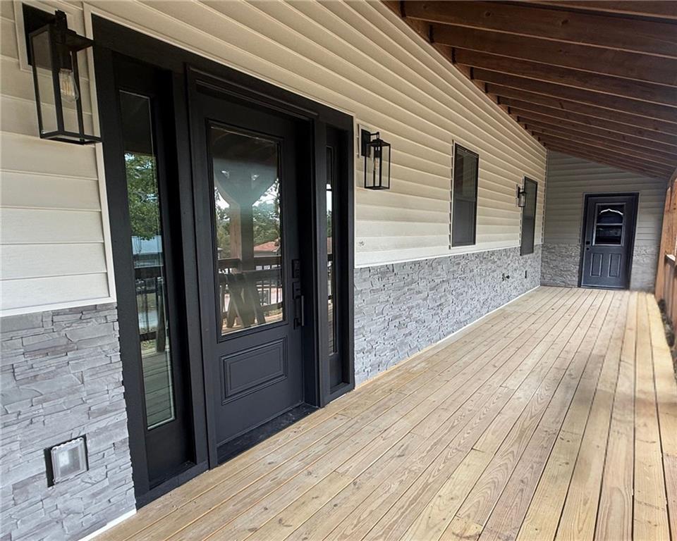 Welcome to this stunning custom modern home where style, comfort, and functionality meet. Set on 0.52 acres of flat, freshly cleared and seeded lawn, this property combines two lots officially rezoned into one expansive parcel. Designed for everyday living or weekend escapes, this 3-bedroom, 2.5-bath retreat blends modern convenience with peaceful lake living. Start or end your day on the expansive 50' x 8' covered patio perfect for enjoying winter lake views and fresh air. Inside, the open floor plan flows seamlessly from the family room to the kitchen, ideal for entertaining. A 42 wood-burning fireplace with floor-to-ceiling ledge stone tile and a custom live-edge mantel adds warmth and rustic charm. A chefs kitchen includes a 36" five-burner propane cooktop, new appliances, an oversized granite island, and a walk-in pantry with ample storage. A stylish half bath sits off the kitchen, while the laundry/mudroom connects to the backyard perfect for unloading lake gear. This space features built-ins, room for side-by-side laundry, and a stainless steel tankless propane water heater with a recirculating system for instant hot water. The private primary suite includes an ensuite bath, custom walk-in closet, and a full-light door to the backyard. Two additional bedrooms are located on the opposite side of the home and share a guest bath with an oversized soaking tub great for relaxing after a day on the lake. The 51' x 27' fully finished garage features four oversized garage doors (2qty: 10' x8' / 1qty: 17'6 x 8') with windows and I-Drive openers, 12' ceilings, and space for boats, golf carts, vehicles, or even a lift. Its pre-wired for a mini-split system for year-round comfort. A full concrete approach provides easy access, and an oversized RV pad with 50/30/110 amp service supports guests or your next adventure. This one has it all! *Seller Disclosure *Transferable Warranties *Plot Map *Recreational Vehicles Private Showing 913-735-3123 / 760-550-1231