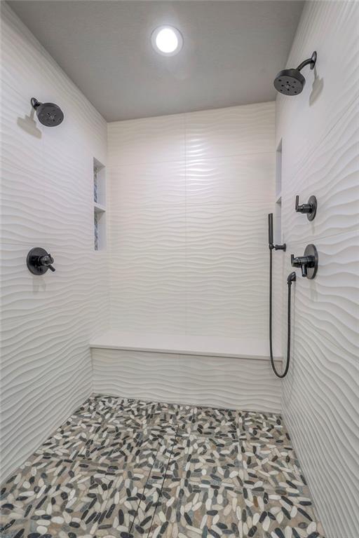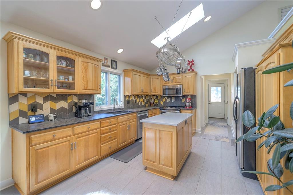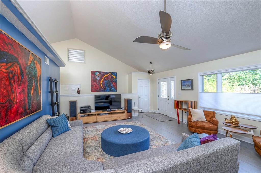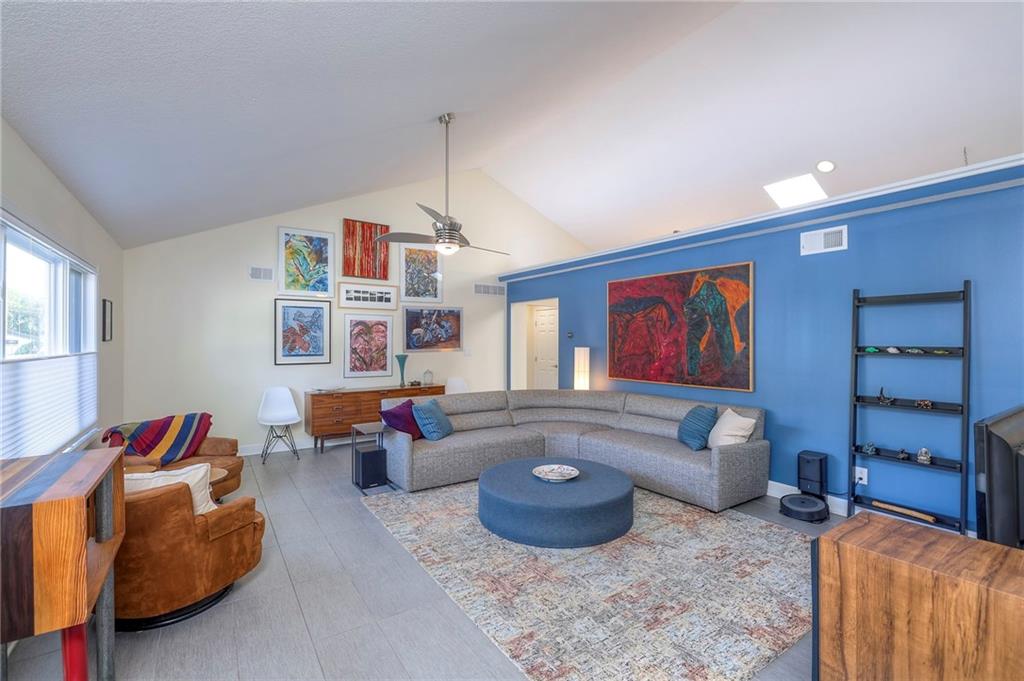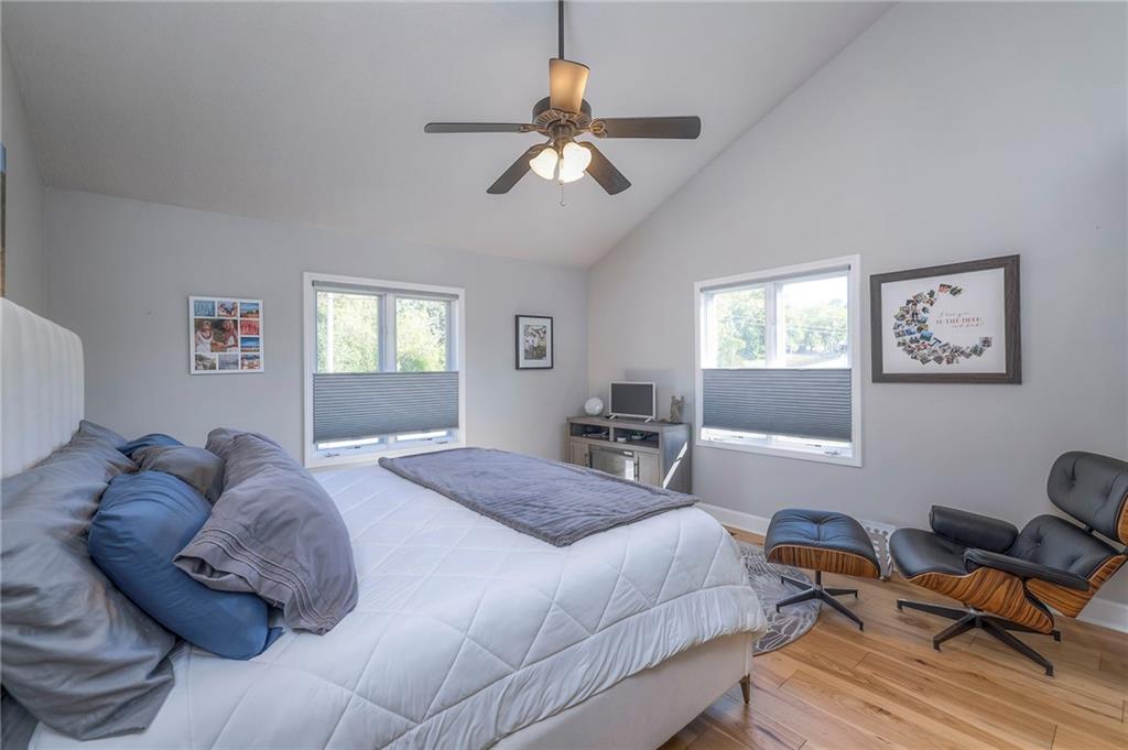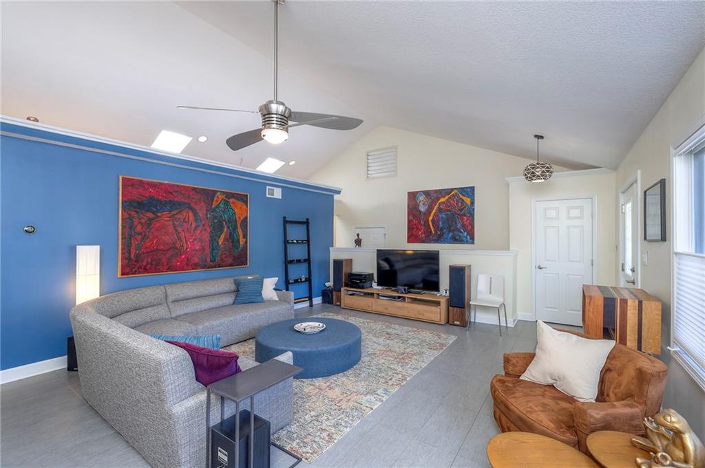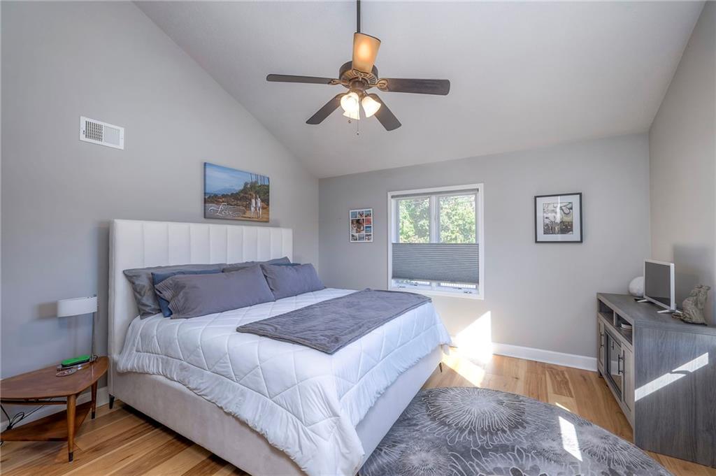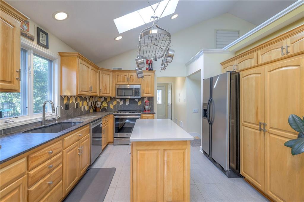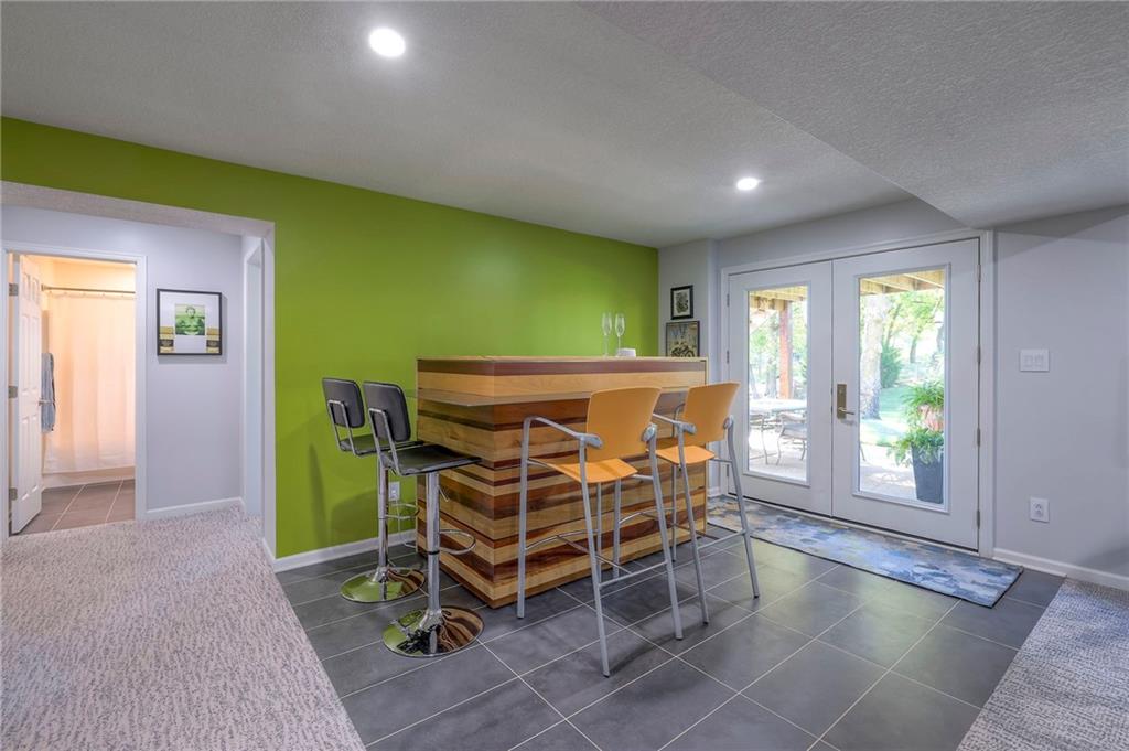 Welcome to this beautifully updated 3-bedroom, 2.5-bath reverse 1.5-story home sitting on a scenic .65-acre lot! Step inside a light-filled living room featuring vaulted ceilings, porcelain tile floors, a ceiling fan, and an abundance of natural light. The updated kitchen is a true highlight, featuring granite countertops, stainless steel appliances, a stylish backsplash, and a spacious eat-in dining area—perfect for daily living or entertaining. The primary suite is your personal retreat, offering a large walk-in closet and a fully updated en-suite bathroom designed for relaxation. Convenient main-level living flows seamlessly into the finished walkout lower level, complete with a large rec room, two additional bedrooms, and a full bath. French doors open to a patio with a hot tub overlooking the private, fenced backyard with a firepit—ideal for cozy fall evenings. Outside, you’ll find even more to love. The backyard features a versatile finished outbuilding, for use as a bonus entertaining space, gym, or office, and half for all your storage or yard equipment needs. Mature trees and a park-like setting provide the perfect blend of privacy and outdoor enjoyment. With recent updates, including newer windows, this home is truly move-in ready. Add in its unbeatable location—just minutes from shops, restaurants, highway access, and KCI airport—and you’ve got a home that checks every box.