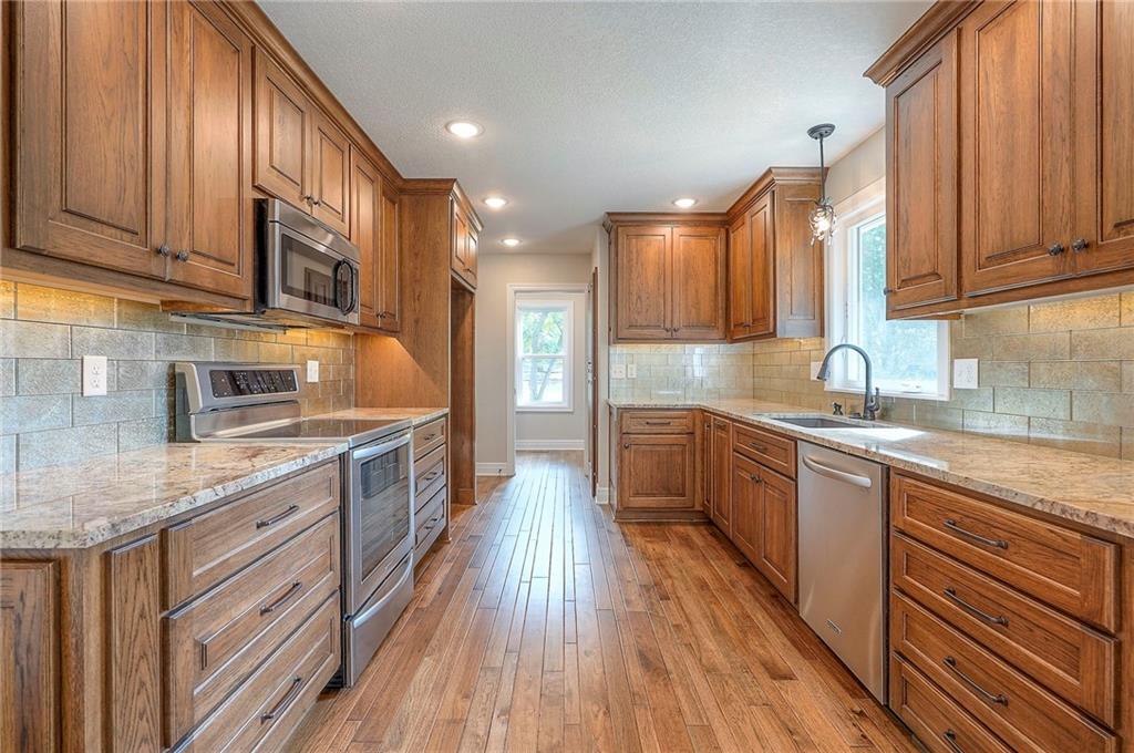 ONE OWNER HOME! THIS ONE WILL GO FAST!! This Don Julian built home is move in ready and has had a MAJOR remodel in 2025!! This is an OPEN floor-plan, four-bedroom home on a 1/2-acre lot on a quiet cul-de-sac neighborhood in Western Shawnee. Located in the much sought after Quivira Woods subdivision (known for its annual Christmas light drive-thru!) The new gorgeous hickory hardwood floors flow seamlessly throughout the main level. The kitchen has brand new hickory cabinets with under cabinet lighting and a floor to ceiling pantry with motion light. The new expansive outdoor composite deck overlooks a beautiful treed lot. This is an entertainer’s dream! It has a newly installed, upgraded Class-4 impact resistant roof with new gutters and gutter guards. **Sellers have had a professional appraisal done and the listing price reflects the price of that appraisal!** *A few pictures have been virtually staged*