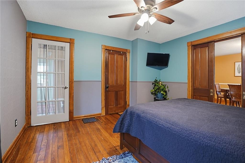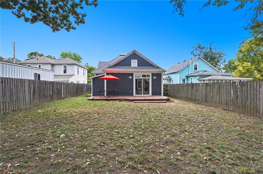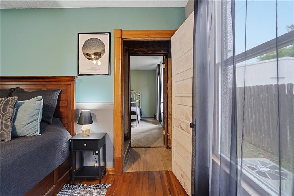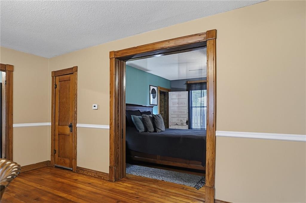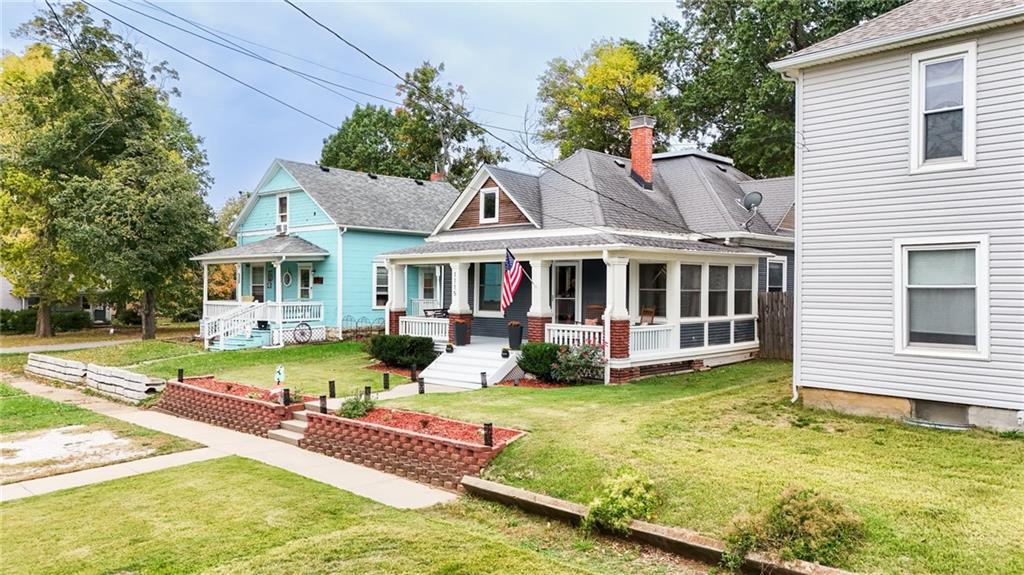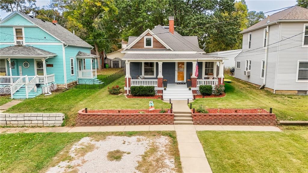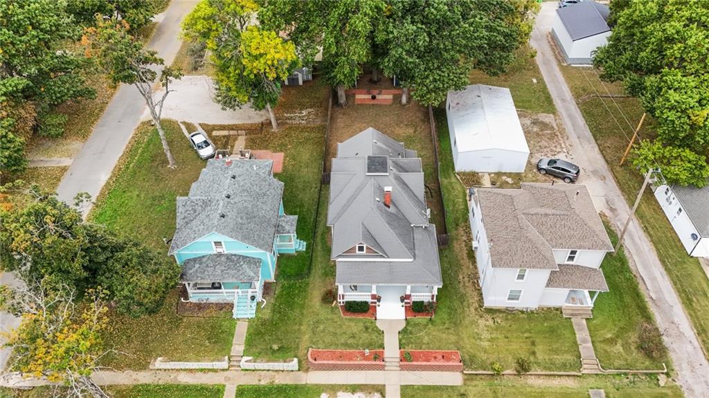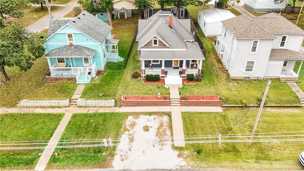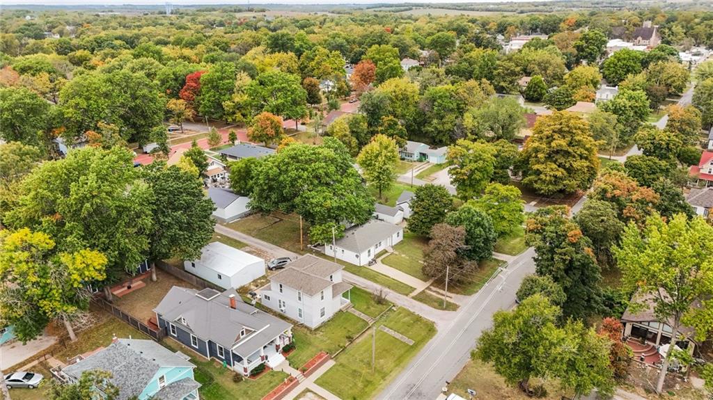 WHAT A COMPLETE CHARMER! This 2 bed, 1 bath home is filled with warmth, character, beauty, a perfect blend of new and old and truly great spaces. The dreamy front porch greets you and asks you to sit a spell. The moment you walk into the entry you feel invited into this lovely home. The room sizes are spacious and effortlessly flow into each other. The dining room boasts of the beautiful hardwood floors and very spacious area that allows a large table for many gatherings. Plenty of storage in the kitchen with a stunning built in wood cabinet we believe to be the age of the home. The vast and large attic could be used for substantial storage or you could renovate it and have an incredible area and added square footage. The Cellar allows for more storage and safety from Kansas weather. Bonus room off of primary could be used for an office, workout room or library, etc. Gorgeous original hardwood floors refinished in 2023 in the living room, dining room and primary bedroom. Primary bedroom has a walk in closet and the most elegant sliding original pocket doors. New laminate flooring in kitchen and laundry room, New carpet in 2nd bedroom, repainted the front porch all in 2025. And additionally, just re-stained the back deck and painted both sheds. Fenced backyard with two sheds. Two off street parking spaces out front. This is your opportunity to live in charming Baldwin with its wonderful downtown area with restaurants, ice cream shop and a coffee shops, and the beloved Maple Leaf Festival. I cannot say enough about this truly special home accept you should not hesitate to schedule your showing now.
