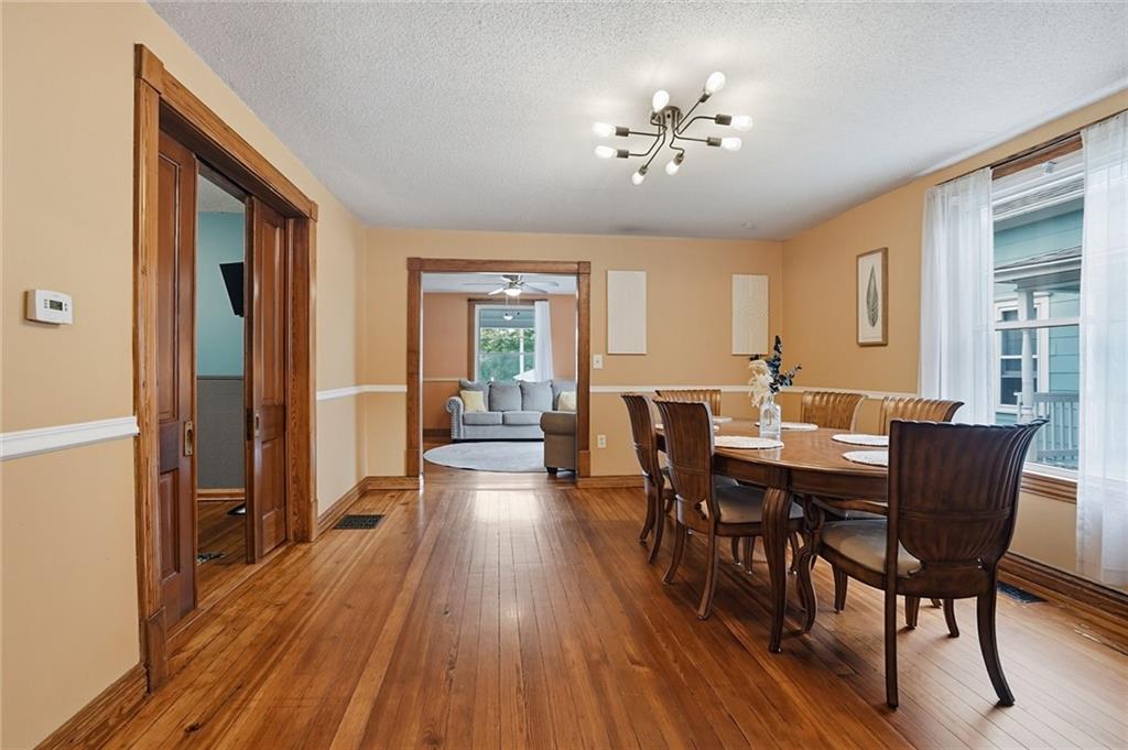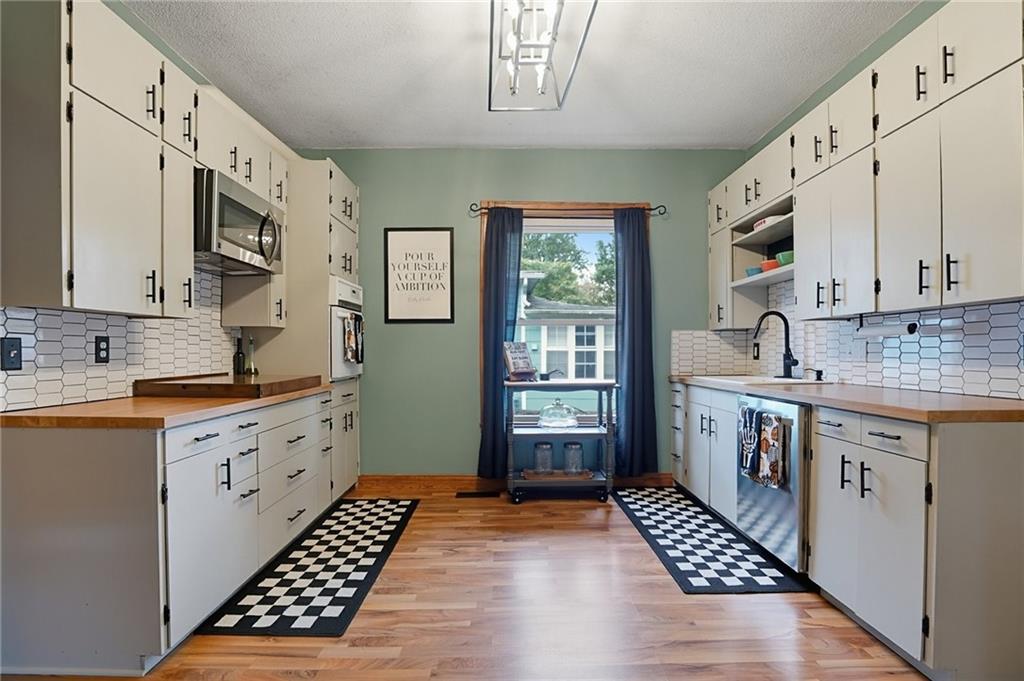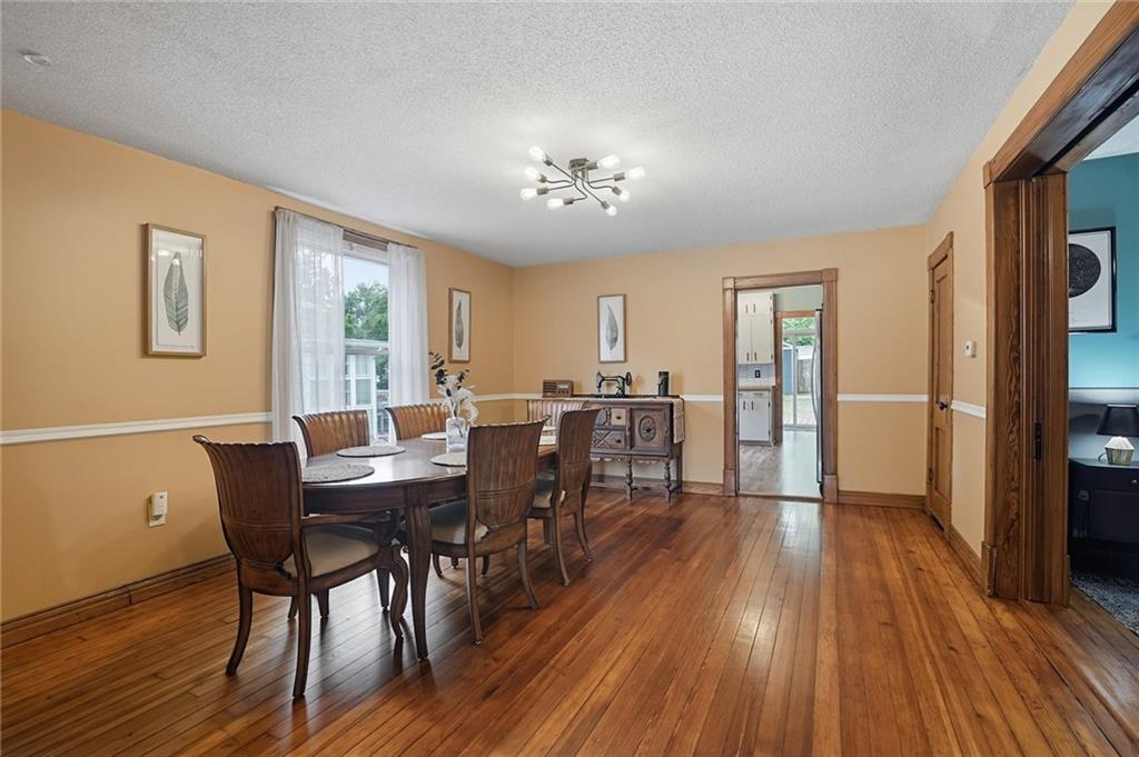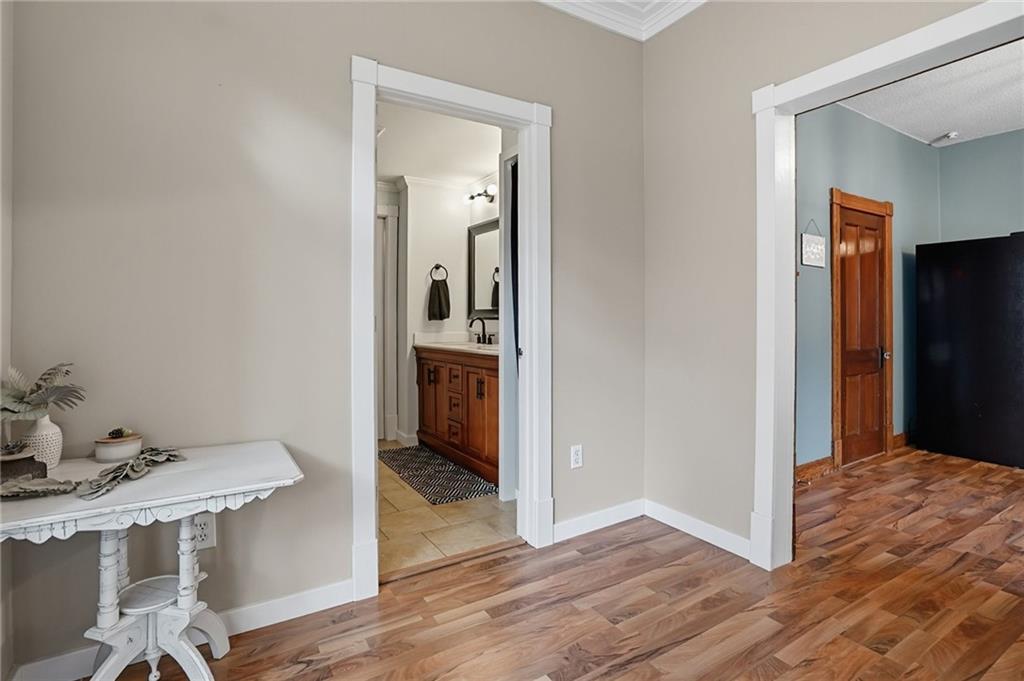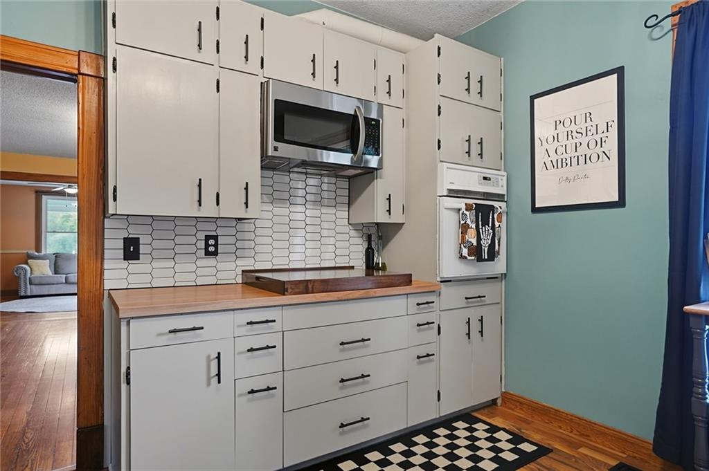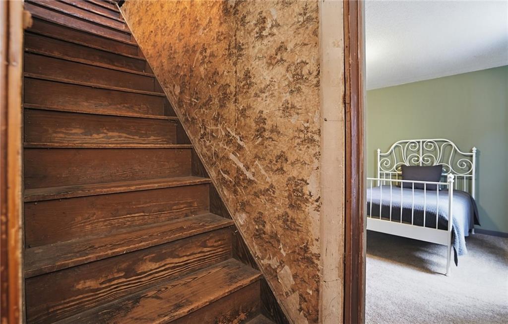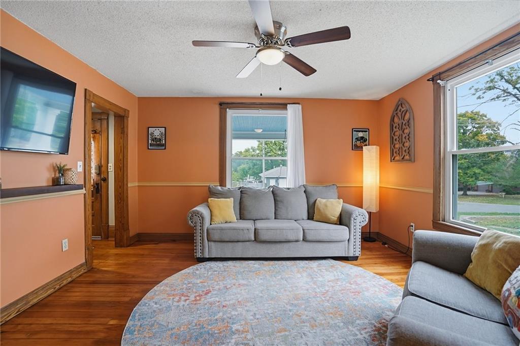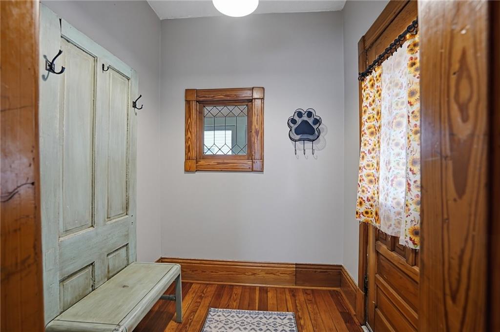 WHAT A COMPLETE CHARMER! This 2 bed, 1 bath home is filled with warmth, character, beauty, a perfect blend of new and old and truly great spaces. The dreamy front porch greets you and asks you to sit a spell. The moment you walk into the entry you feel invited into this lovely home. The room sizes are spacious and effortlessly flow into each other. The dining room boasts of the beautiful hardwood floors and very spacious area that allows a large table for many gatherings. Plenty of storage in the kitchen with a stunning built in wood cabinet we believe to be the age of the home. The vast and large attic could be used for substantial storage or you could renovate it and have an incredible area and added square footage. The Cellar allows for more storage and safety from Kansas weather. Bonus room off of primary could be used for an office, workout room or library, etc. Gorgeous original hardwood floors refinished in 2023 in the living room, dining room and primary bedroom. Primary bedroom has a walk in closet and the most elegant sliding original pocket doors. New laminate flooring in kitchen and laundry room, New carpet in 2nd bedroom, repainted the front porch all in 2025. And additionally, just re-stained the back deck and painted both sheds. Fenced backyard with two sheds. Two off street parking spaces out front. This is your opportunity to live in charming Baldwin with its wonderful downtown area with restaurants, ice cream shop and a coffee shops, and the beloved Maple Leaf Festival. I cannot say enough about this truly special home accept you should not hesitate to schedule your showing now.
