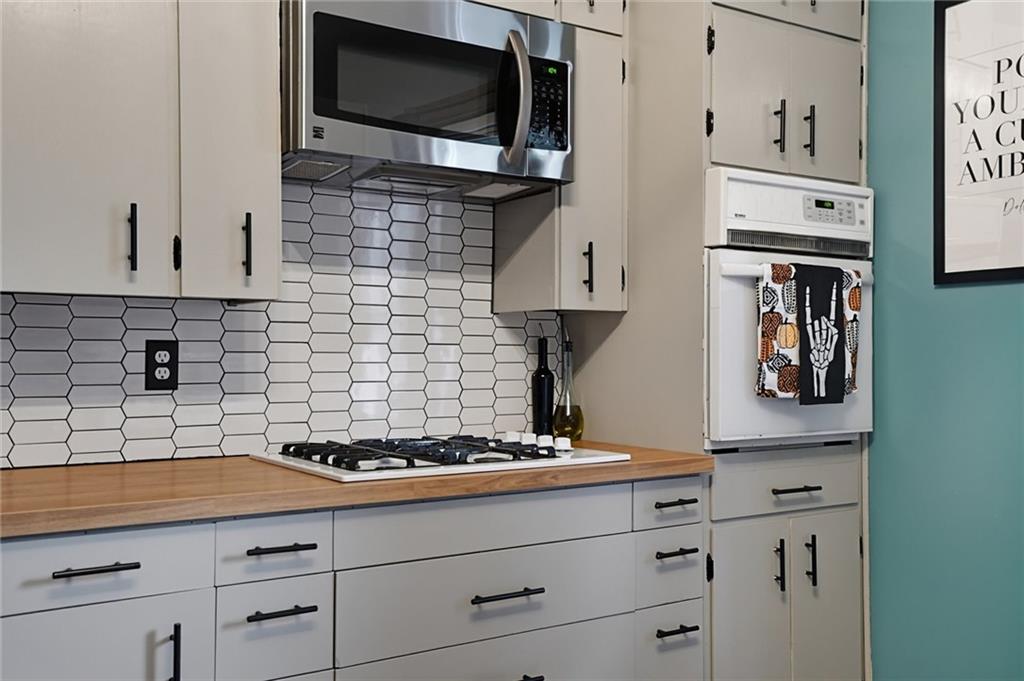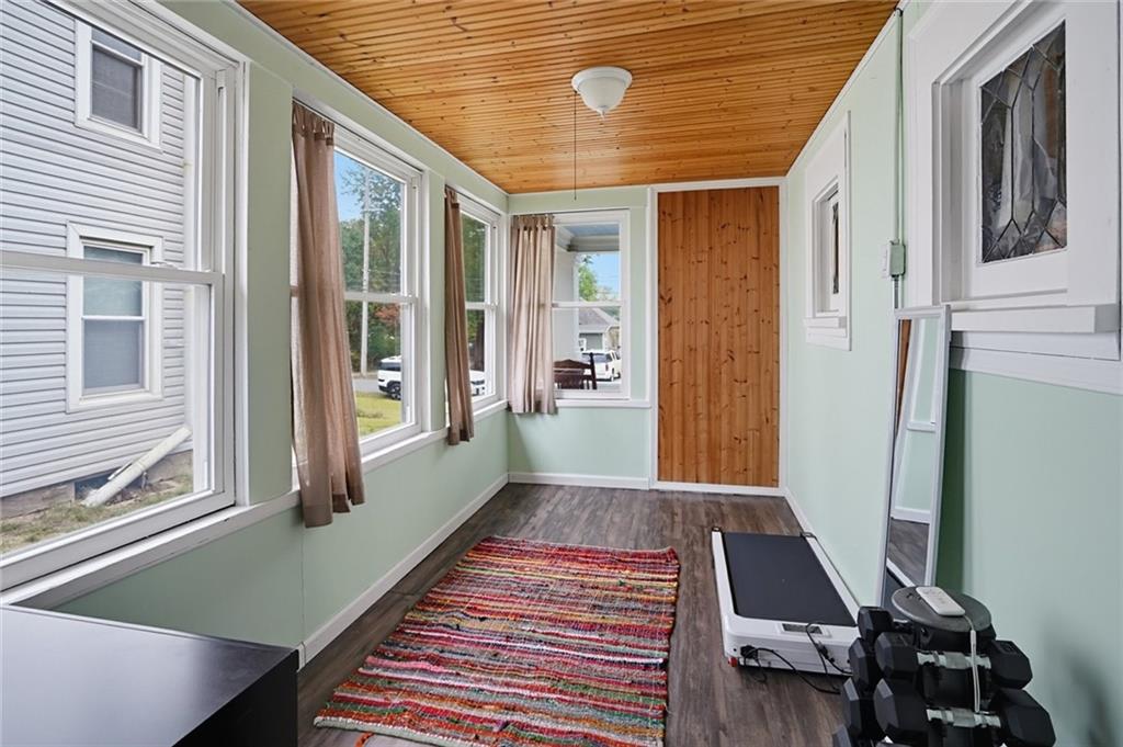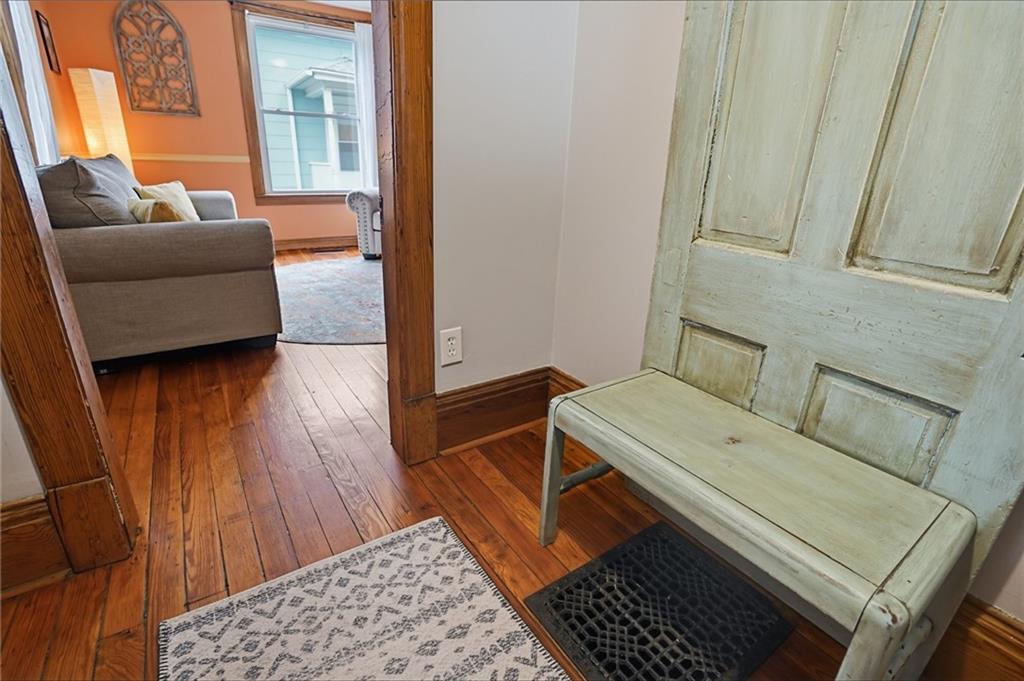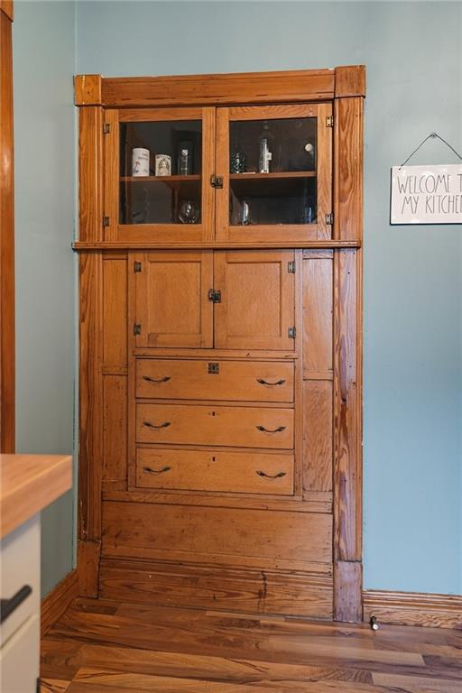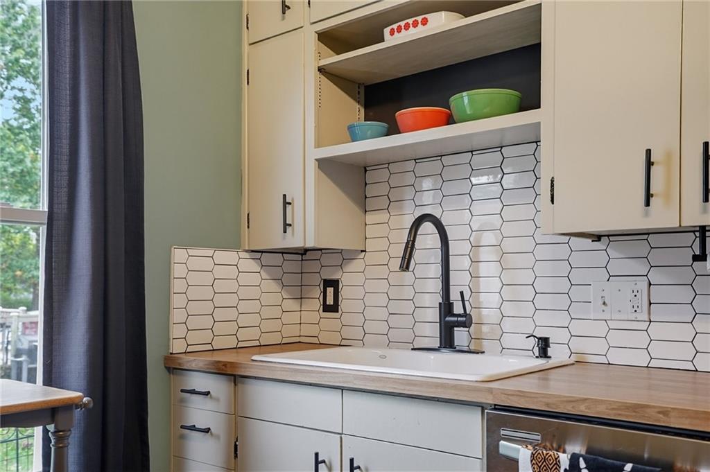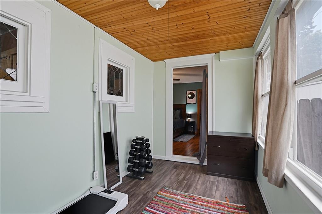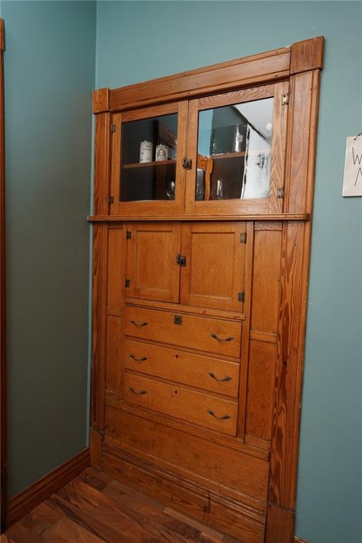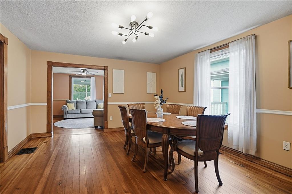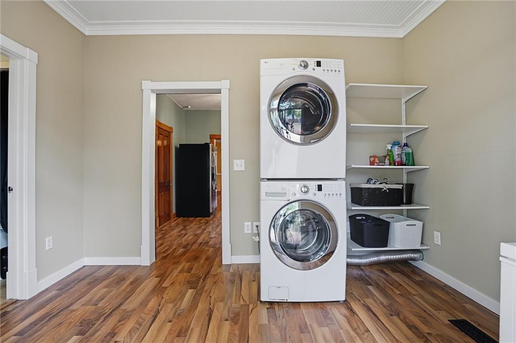 WHAT A COMPLETE CHARMER! This 2 bed, 1 bath home is filled with warmth, character, beauty, a perfect blend of new and old and truly great spaces. The dreamy front porch greets you and asks you to sit a spell. The moment you walk into the entry you feel invited into this lovely home. The room sizes are spacious and effortlessly flow into each other. The dining room boasts of the beautiful hardwood floors and very spacious area that allows a large table for many gatherings. Plenty of storage in the kitchen with a stunning built in wood cabinet we believe to be the age of the home. The vast and large attic could be used for substantial storage or you could renovate it and have an incredible area and added square footage. The Cellar allows for more storage and safety from Kansas weather. Bonus room off of primary could be used for an office, workout room or library, etc. Gorgeous original hardwood floors refinished in 2023 in the living room, dining room and primary bedroom. Primary bedroom has a walk in closet and the most elegant sliding original pocket doors. New laminate flooring in kitchen and laundry room, New carpet in 2nd bedroom, repainted the front porch all in 2025. And additionally, just re-stained the back deck and painted both sheds. Fenced backyard with two sheds. Two off street parking spaces out front. This is your opportunity to live in charming Baldwin with its wonderful downtown area with restaurants, ice cream shop and a coffee shops, and the beloved Maple Leaf Festival. I cannot say enough about this truly special home accept you should not hesitate to schedule your showing now.