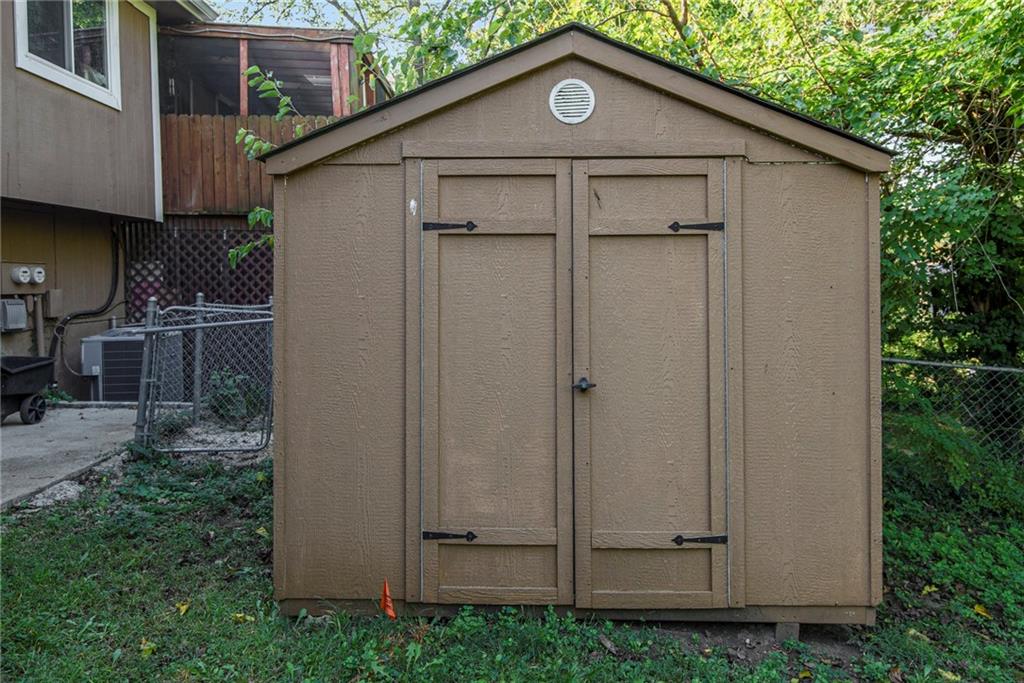 Back and better than ever! NEW ROOF and additional repairs have been made! Come see this darling home with gleaming wood floors, gas start wood burning fireplace and vaulted living room ceilings! Enjoy the cozy kitchen and dining rooms with real wood cabinets, ample counter space and double doors leading to the birds eye deck. Newer Thermal windows, updated baths, vaulted ceiling in primary bedroom, and additional family/flex room in garage level. Fully fenced yard and walking distance to many of the schools. Close to great shops and daily necessities, plus just minutes to I-35 or I-435!