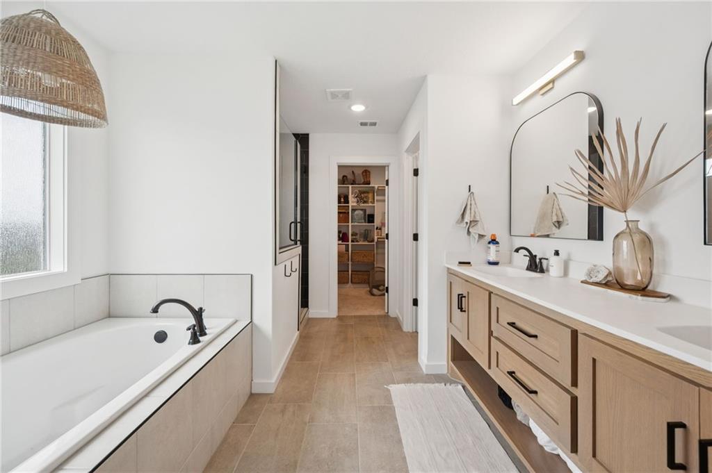 Welcome home to Symphony Farms, a sought after subdivision in Gardner, KS. This 3 year new resale home located on a cul-de-sac is one of Lifestyle Building & Design's Clint plan and is gorgeous throughout with lots of upgrades! Greet your guests in the 2 story entry off the covered front porch. Upgraded wood floors throughout the main level. The kitchen has cabinets to the ceiling, white oak hood and island, upgraded honed countertops, composite sink, gas range and GE profile s/s appliances. The custom butler pantry has an adjustable appliance stack, two oversized can good/spice racks, lots of storage and outlets throughout. The living room has beams, gas fireplace and lots of windows letting natural light in. Use the large front room as your formal dining room, playroom or tv room! Off the garage is spacious area with a built-in desk, shelves, boot bench and half bath. Upstairs are all 4 bedrooms: one with a bonus room! Primary suite has shiplap ceiling with beams & ceiling fan. Primary bath has upgraded white oak double vanity with open area below for towels and baskets, soaker tub, large walk-in shower with bench. 2 bedrooms share a jack-in-jill bathroom with vanity with 2 sinks and open shelf below for towels/baskets, shower/tub combo and toilet. 4th bedroom has a bonus room attached and its own private bathroom. This home is a 3 car garage with the expanded third bay for all your toys or workbench. This home sits on a large flat lot with a fenced back yard and sprinkler system. Covered patio with an additional large expanded patio! Unfinished basement is plumbed for a bathroom, egress window for the 5th bedroom. Window treatments throughout. Symphony Farms community has its own pool, clubhouse, pickleball court & basketball court. Walking distance to Celebration Park. Don't miss out on this gorgeous 2-story home with all the upgrades!