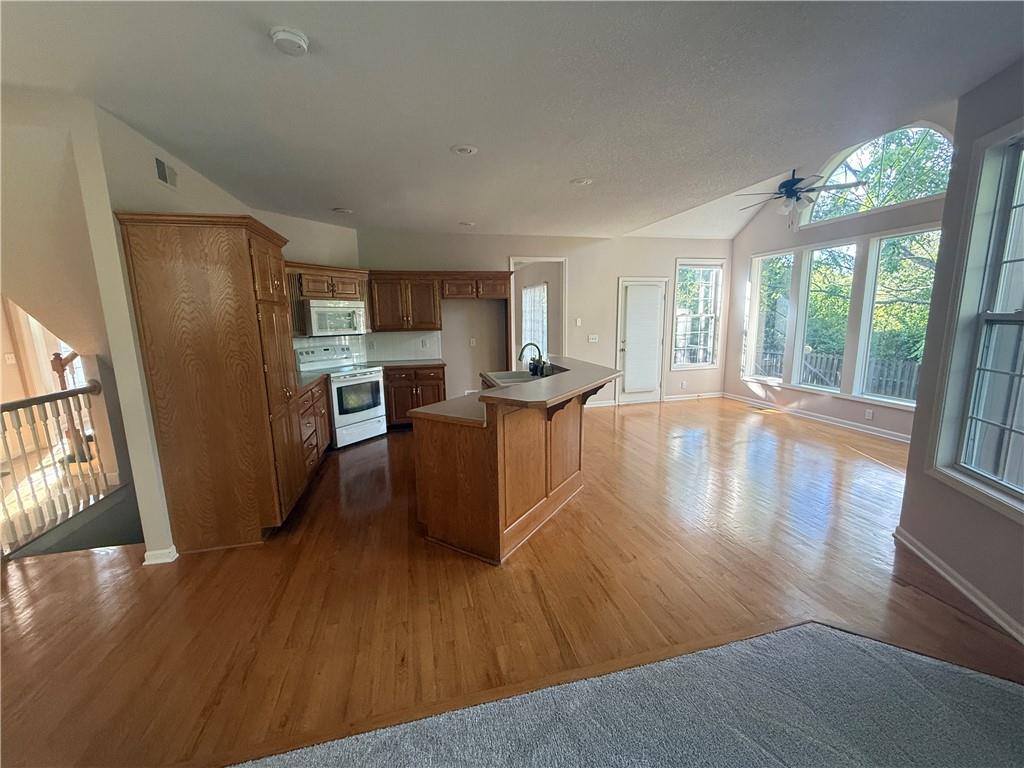 HUGE PRICE IMPROVEMENT! Move in Ready and backs to green space. Enjoy peace of mind with Major Updates that include a Brand New Roof and Gutters, All New Plumbing, New Carpet, Fresh Interior and Exterior Paint, and a Composite Deck, New Lighting and ceiling paint. Enjoy a large Kitchen that opens to a spacious Breakfast Area offering picturesque views of the private backyard. A wonderful Family Room with fireplace for cozy nights ahead, plus a Formal Dining Room and Sitting Room perfect for Holiday Entertaining. There is a half bathroom on the main level. Upstairs offers a Spacious Primary Suite with Ensuite Bathroom and Walk-in Closet. There are 3 additional Bedrooms, 2 Full Bathrooms, and a convenient Laundry Room on the upper level. Fantastic Neighborhood Amenities include a sparkling Pool with Clubhouse, Trails, Volleyball Courts, and Play Area. Award-Winning Olathe School District. Conveniently located near shopping, dining, and highway access, this home is truly move-in ready with all the big-ticket updates complete!