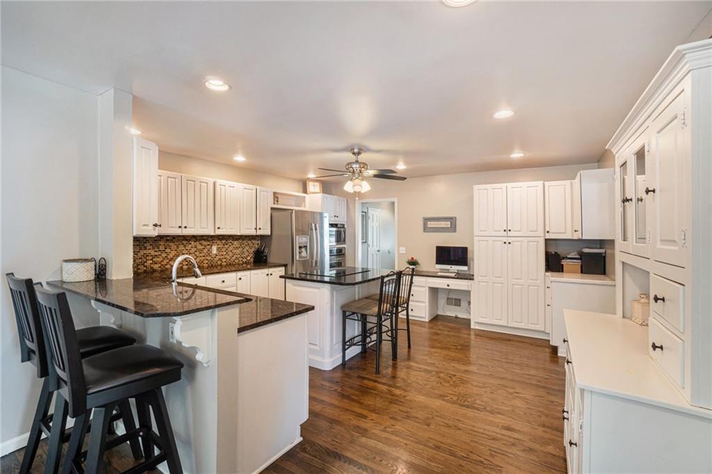 Beautiful Ranch with vaulted fireplace living room -3 bed/3.5 baths, 3 car garage and 2500 sq ft. New AC, Furnace 1yr old, 3 yr old roof, new driveway, newer carpet, interior paint, and thousands in updates! Formal front family room, Living room, Dining room and eat in Kitchen -with beautiful hardwood floors, plus seating at two islands with granite counter tops. Convenient half bath and laundry room off of kitchen, and enjoy the evenings on the large, newly stained deck. Basement has 2nd laundry room, full bath, huge rec /family room with LVP that garage walks into. Steal siding and thermal windows. Fenced in yard, 3rd car garage updated with storage and work bench. Keystone park right down the street and great location off 7 hwy for quick access to all Blue Springs offers. Award winning Blue Springs schools! You won't want to miss this one!