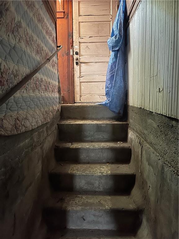 Investors dream! This 2 bed, 1 bath home has loads of potential and is ready for rehab. It's a little over 1000 sq ft with great layout and unfinished basement. Floor furnace has been replaced with central heat, window air. There is a fenced in backyard w/ storage shed, and a detached garage at the end of the shared driveway. Selling "As Is".