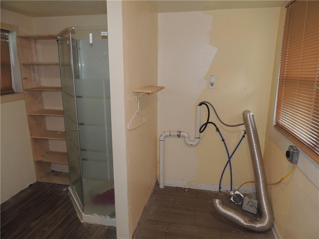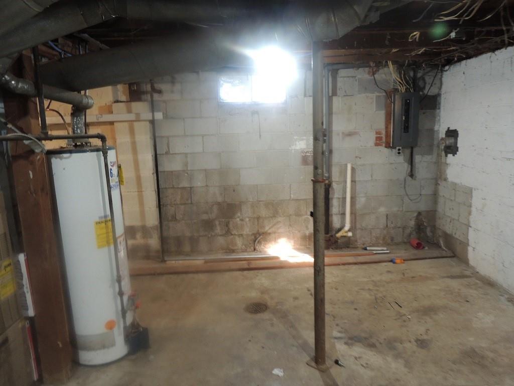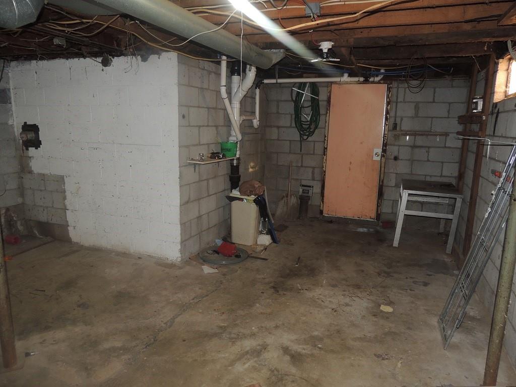 One bedroom one bath home with full basement. Laundry moved up to main level in bathroom, Needs TLC, New flooring and paint will go along way! Concrete block basement with access from back of home. Almost 600 square feet