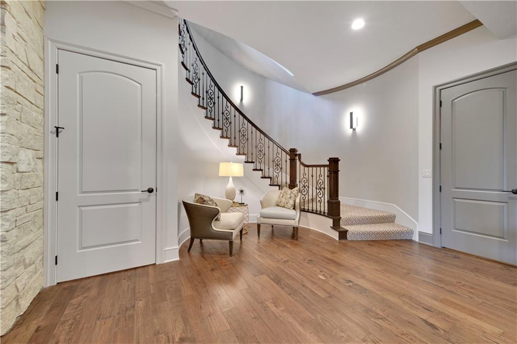 Welcome to this Bickford-designed, Koehler custom-built masterpiece—an extraordinary home that perfectly blends sophistication, comfort, & resort-style living. Nestled on a picturesque ¾-acre lot backing to greenspace, this home is a true sanctuary with every detail thoughtfully curated for an exceptional lifestyle. Stately custom iron doors welcome you into light-filled living spaces featuring a dramatic living room which dazzles with walls of windows, custom built-ins, and a designer ceiling with cove lighting. A cozy hearth room features a soaring vaulted ceiling with beams, and a two-story fireplace.The gourmet kitchen is a showstopper, boasting a massive quartz island, custom-painted cabinetry, beverage refrigerator,luxury appliances, double dishwashers, & a spacious butler’s pantry. A large mudroom with built-in desk and cabinetry ensures organization meets style. Retreat to the primary suite, with a box-beam ceiling, built in desk, spa-like bathroom with double vanities & a dreamy walk-in closet with its own laundry. Upstairs, you'll find three additional bedrooms each feature private baths and walk-in closets, plus a hidden playroom tucked into the dormer space.The lower level is a wow! It includes a vast rec room, temperature-controlled wine cellar, full bar, dedicated gym, fifth bedroom, full bath, sauna, anti-static AV room, and an oversized walk-in pantry with refrigerator. A 6-car garage with epoxy flooring, built in storage, & a 50-amp circuit provides room for all the cars & toys. The showcase backyard includes an oversized 20' x 50' heated saltwater pool with spa, infinity-edge waterfall, & automatic cover—an entertainer’s dream! It is complemented by two firepits & a covered deck with heaters, fireplace, and retractable screens. A full outdoor kitchen on the lanai is surrounded by extensive landscaping & a fenced yard. Enhanced with smart-home technology, home offers both cutting-edge convenience & timeless craftsmanship.