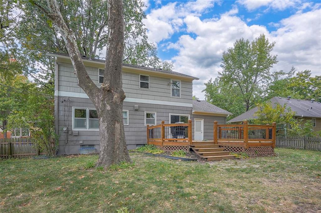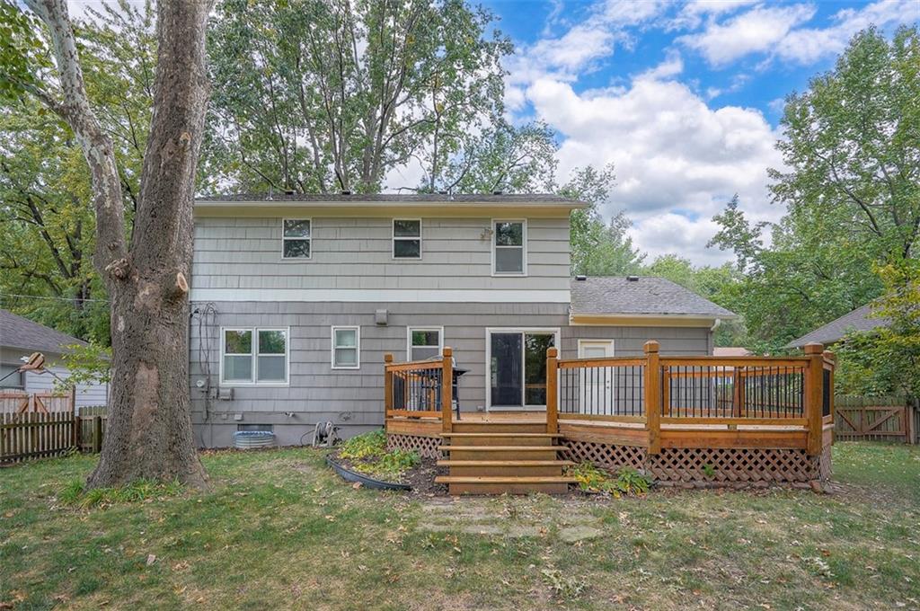 WELCOME HOME to this 3BR/2.1BA home ready for move-in! Entry leads to a large living room with FIREPLACE and wood floors running though the main level. Dining room off the kitchen is perfect for family gatherings. Eat-in kitchen has plenty of storage space, counter seating and STAINLESS STEEL appliances. Access to the DECK and backyard offers additional entertaining options. Upstairs includes a large master bedroom with ENSUITE bathroom and two secondary bedrooms with full hall bath. FINISHED basement is ready for you to customize to your family’s needs along with plenty of storage space in the unfinished area. FENCED backyard with large DECK and mature trees provides a welcoming space to spend outside with friends and family. LOCATION close to Downtown Overland Park shops, restaurants and Farmers Market, area parks and easy freeway access. Don’t miss this opportunity!!