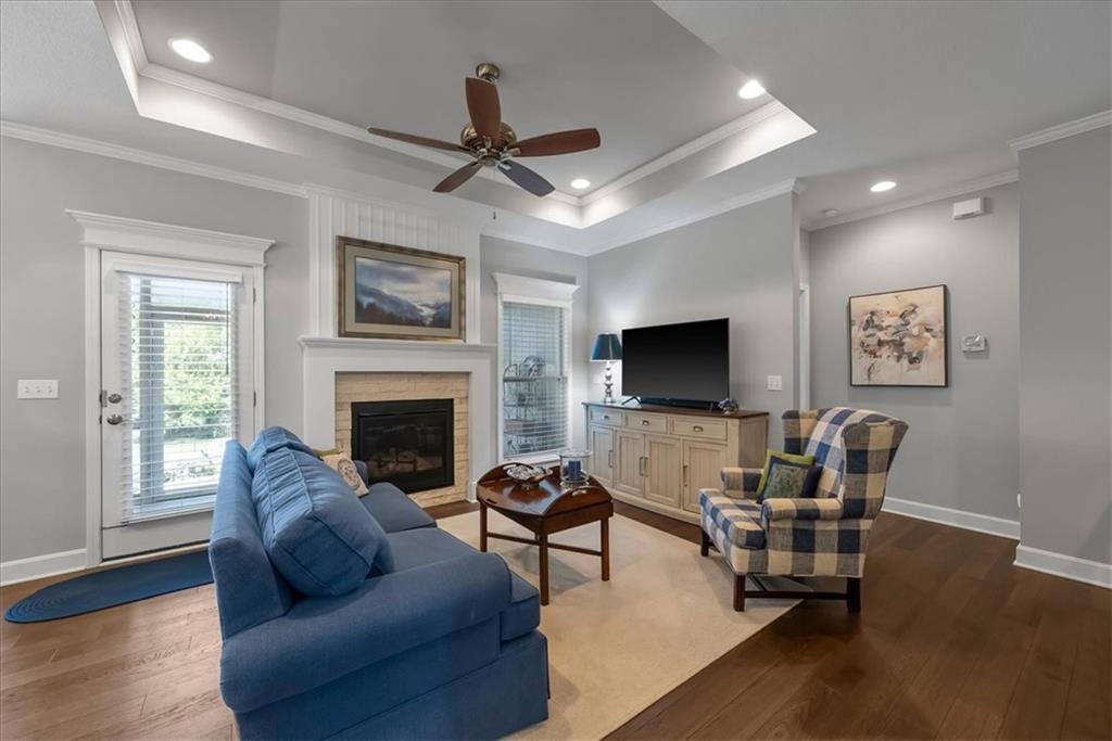 Welcome to this beautiful reverse 1.5-story villa in the Enclave at Prairie Star. This light maintenance-provided home offers 4 bedrooms, 3 full baths, and a bright open layout. The main level boasts a spacious great room with gas fireplace, a chef’s kitchen with large island, custom cabinets, granite counters, and walk-in pantry, plus the convenience of laundry and two bedrooms including the primary suite. Step outside to the screened-in patio overlooking the backyard—perfect for relaxing or entertaining. The finished lower level adds a large recreation room, two bedrooms with walk-in closets, a full bath, and plenty of storage. Move-in ready and thoughtfully designed, this home combines comfort, style, and low-maintenance living. These don't become available often. The most recent MLS sale in the subdivision was over 2 years ago so get your showing scheduled!