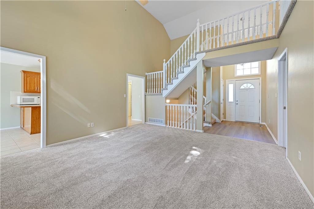 Welcome to Hawk's Ridge subdivition in Lee's Summit. Step inside this 3BR/2.5BA/2 car garage one and a half story home just in time for the holidays. BRAND NEW entry flooring & carpet in Living area and Primary Bedroom. Open concept is very inviting for entertaining throughout the year. The Kitchen offers an abundance of countertop and cabinet space and opens up to a vaulted ceiling Dining area loaded with natural sunlight. Off of the Kitchen you will find a 1/2 bathroom and the laundry area. The Primary Bedroom located on the main level offers a ceiling fan and a nicely appointed bathroom with dual sink vanity, shower and corner soaker bathtub. The Primary closet was custom designed to maximize space for its new owners. The 2nd floor is home to two additional nice sized bedrooms and a full bathroom located in between both bedrooms for convneience. This bathroom offers a tub/shower combo. The unfinished lower level is great for storage or could be used for additional living space. A unique feature of the house is the walkout/walkup access to the backyard. This feature makes is very easy to move items/materials, etc. in and out of the basement. Don't miss this great opportunity in Hawk's Ridge subdivision..easy access to highway, parks, schools, shopping and more. Lee's Summit Schools -- Sunset Valley Elem, Pleasant Lea Middle, Lee's Summit High.
