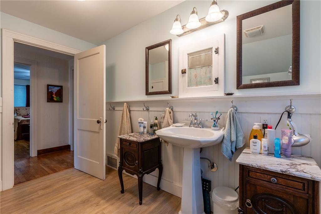 Be the next owner of this 1930 all brick bungalow. Entirely remodeled with beautiful refinished hardwood floors, luxury vinyl flooring in the updated kitchen and bathrooms. Enjoy your beverage of choice on the all season porch or watch the world go by in heated/air cooled comfort. Upon entering the main residence, enjoy a large spacious living room with a beautiful fireplace (currently not used, but has gas ran to it), walk through into the dinning area with enough room for large table to host holidays and family gatherings. Neutral painted cabinets in the kitchen offer a soothing environment for cooking. Exit out of the kitchen onto the very nice covered deck with a ceiling fan. The back yard has a newer fence and access the one car garage with a carport accessed also from the alley. Enjoy a quiet evening watching your favorite show or reading a good book in the den off the kitchen, which also has a half bath and access to the basement. Washer and Dryer stay with the house and are located in the basement along with the updated electric panel and 40 gallon gas HWH. The basement also has side door access for large items. There are two large bedrooms located on the second floor with hardwood floors, tons of natural light, walk in closets and plenty of room for furniture and beds. The large full bath, located on 2nd floor has been completely updated while keeping some 1930s charm.