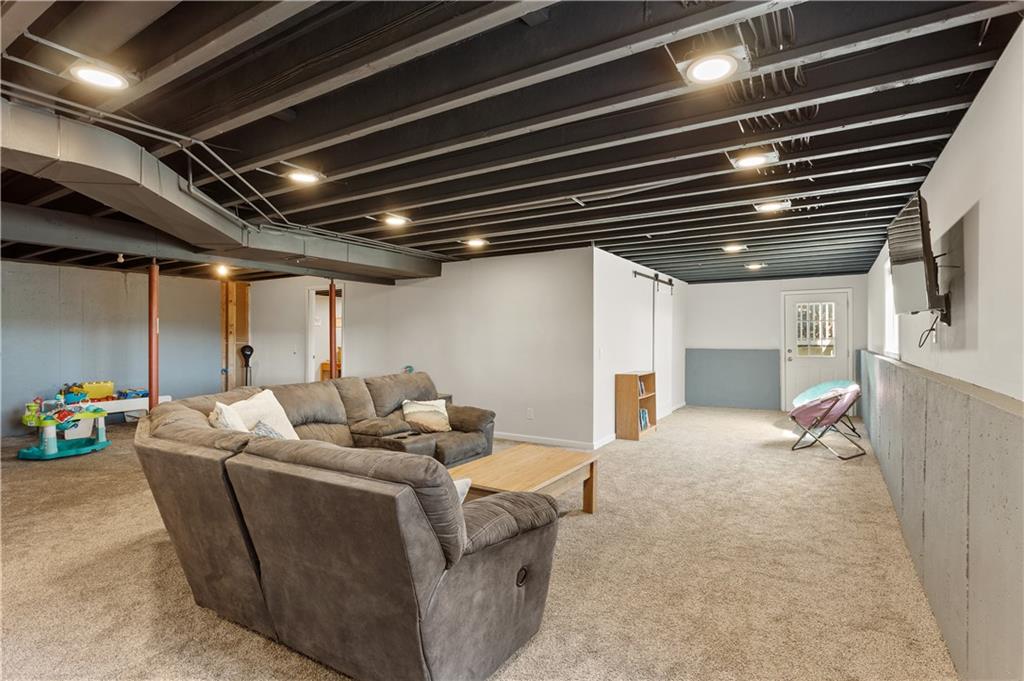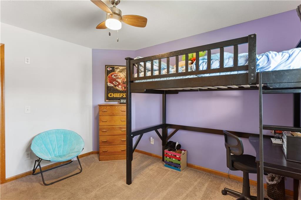This beautifully maintained true ranch home features a spacious open floor plan and a host of modern upgrades. The updated kitchen boasts custom cabinetry, granite countertops, stylish fixtures, and designer lighting—perfect for both cooking and entertaining. The inviting living room showcases soaring vaulted ceilings, a striking stone fireplace, and gleaming hardwood floors, creating a warm and elegant atmosphere. Enjoy peaceful summer evenings on the serene back deck or unwind on the large front porch. The primary suite includes an updated bathroom with tiled floors and a luxurious walk-in shower. Located in the quiet and desirable Prairie Estates neighborhood, this home offers unbeatable highway access and is just steps from the elementary school—making it ideal for families and commuters alike!