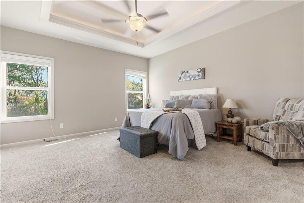 BOM - no fault to the sellers. This has all you need (plus extra) without the wait of a build job. Impeccably Maintained Reverse 1.5-Story Backing to Green Space! This stunning home has been lovingly cared for and offers a spacious, open layout that’s perfect for both everyday living and entertaining. Featuring 4 bedrooms — 2 on the main level and 2 on the lower level—you’ll enjoy flexibility and room to grow. With two living spaces and a bonus area just waiting for all the many uses you will dream of, you will find a perfect layout and one that has received many compliments. The main level boasts a bright, open kitchen complete with hardwood floors, a frig, a walk-in pantry, and convenient main-level laundry tucked behind the kitchen. The expansive great room flows beautifully into the kitchen and dining area, creating a warm and welcoming atmosphere. And, it's perfect for those who want to open up the shades and capture the green space and nature right in your backyard. You can enjoy this lovely view right from your living room, or soak in the view from the deck right off the kitchen. To top off this peaceful atmosphere, enjoy the see-through fireplace both inside and out. Perfect for entertaining as well. Downstairs, the finished basement is an entertainer's dream and includes a wet bar, rec room, and dedicated media room—ideal for movie nights or hosting parties and game nights. You can also use this bonus space for a kids play area as well. Also, off of the family room is another outside space. The covered patio is perfect for more outside enjoyment and added privacy and tranquility. Shall we say - 'great place to put your future hot tub?' ;) Plus, this home also has 2 small storage areas AND that third car garage, adding to the many great features. Call and set up your showing today.