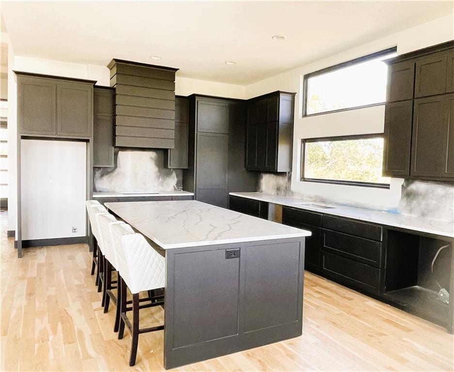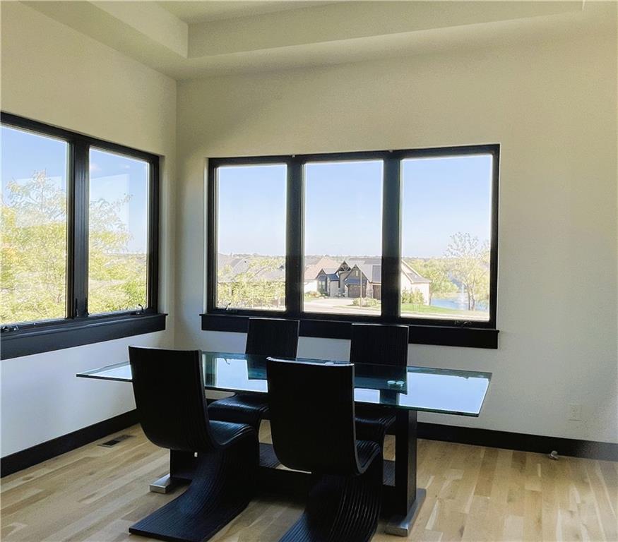 WaterCrest Landing | Sunset Views. Elevated Living. LUXURY REIMAGINED: Distinctive Modern Design with Elevated Finishes in WaterCrest Landing Welcome to a masterpiece of contemporary luxury in the coveted, maintenance-provided WaterCrest Landing. This home is a testament to sophisticated design, offering an unparalleled living experience just steps from the natural beauty of Lake Lenexa and Black Hoof Park. If you like to entertain, this home is for you! Located in a private cul-de-sac, step inside and be captivated by the distinctive modern design, characterized by an open and bright layout and dramatic high ceilings throughout. The main level features a seamless flow, unified by stunning White Oak plank floors and accented by impressive 8-foot modern doors. The gourmet kitchen is a work of art, boasting a spacious island and backsplash adorned with beautiful quartz, featuring a dramatic 3-inch edging with a waterfall edge. Culinary excellence meets high design in this functional and striking space. Retreat to the luxurious main floor primary suite, a sanctuary of unique details. Indulge in the spa-like master bath, featuring a floating wall vanity and a walk-in walk-behind shower. The primary closet is a true dream, complete with an insane shoe wall and a wealth of custom shelving and vanity built-ins. The home’s expansive functionality continues in the walkout lower level, featuring impressive 10-foot ceilings. This level hosts a huge, open-concept space anchored by a large wet bar, along with generously-sized additional bedrooms. This area is perfect for entertaining. Enjoy serene outdoor living with a beautiful backyard overlooking a peaceful greenspace and pond view. This property's prime location, custom-level finishes, and brilliant architectural design offer a rare opportunity for discerning buyers. Move-in ready luxury awaits—this is an absolute must-see.