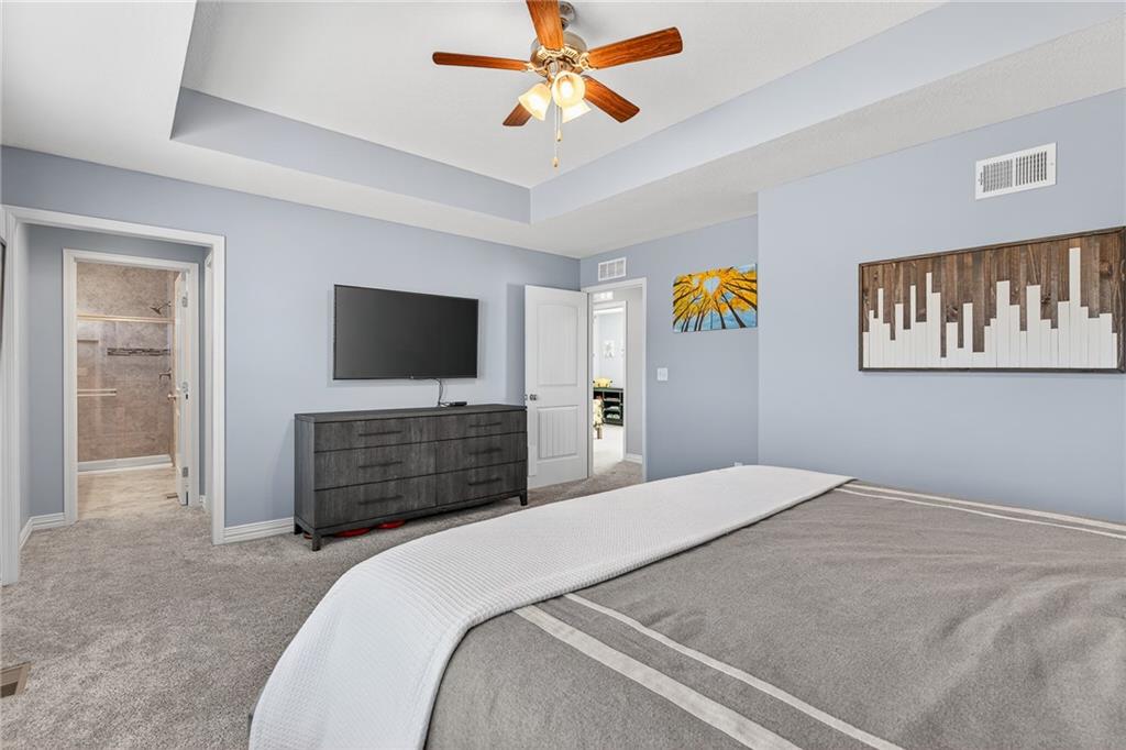 Move-In Ready Gem in Raymore! Built in 2017, This Beautifully Maintained 3-Bedroom, 2.5-Bath Split-Entry Home Sits on an Oversized Corner Lot in a Quiet Cul-de-Sac. Step Inside to an Open-Concept Layout Featuring a Spacious Great Room with a Gas Fireplace and Newer Carpeting on Main Level. The Kitchen is a Chef’s Delight, Showcasing Granite Countertops, Rich Stained Cabinetry, Stainless Steel Appliances, Large Island, Pantry, and Dining Area. Retreat to the Primary Suite Complete with a Walk-in Shower, Double Vanity, and Walk-in Closet. Two Additional Bedrooms are Generously Sized, and the Convenient Bedroom Level Laundry Makes Everyday Living Easier. Downstairs, Enjoy the Finished Lower-Level Recreation Room with a Half Bath—Ideal for a Media Room, Playroom, or Home Office. Step Outside to a Huge, Fenced Backyard with a Nice Deck, Offering Plenty of Room for Play, Pets, and Gatherings. A Spacious Three-Car Garage Provides Ample Storage & Parking. Exceptional Value in Coveted Eagle Glen Community. Enjoy the Many Neighborhood Amenities Including Wooded Walking Trails, Resort-Style Pool with Cabana, and Separate Splash Pool. All of This in a Fantastic Location with Easy Highway Access. Don’t Miss this One – Welcome Home!