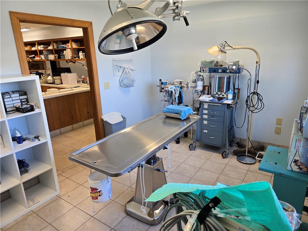 Commercial building space in Adrian, Missouri. Just 1/2 a mile East of Interstate 49. This 42x120 foot building (5,040 SQ ft) sits on 3 acres. It is currently set up as a large and small animal vet clinic. It has public and private entry. Large exterior doors for utility purposes.The building is free span so any and all interior walls can be removed to suit your business needs. Special consideration for building contents if you wish to purchase as a clinic. Large circle drive for easy access.