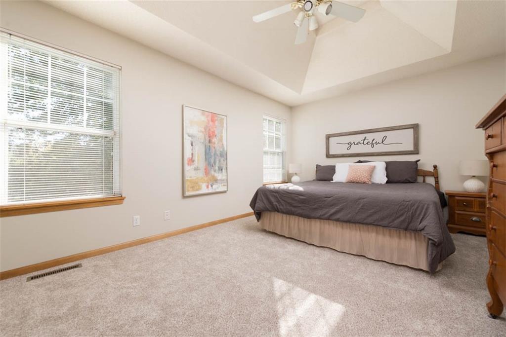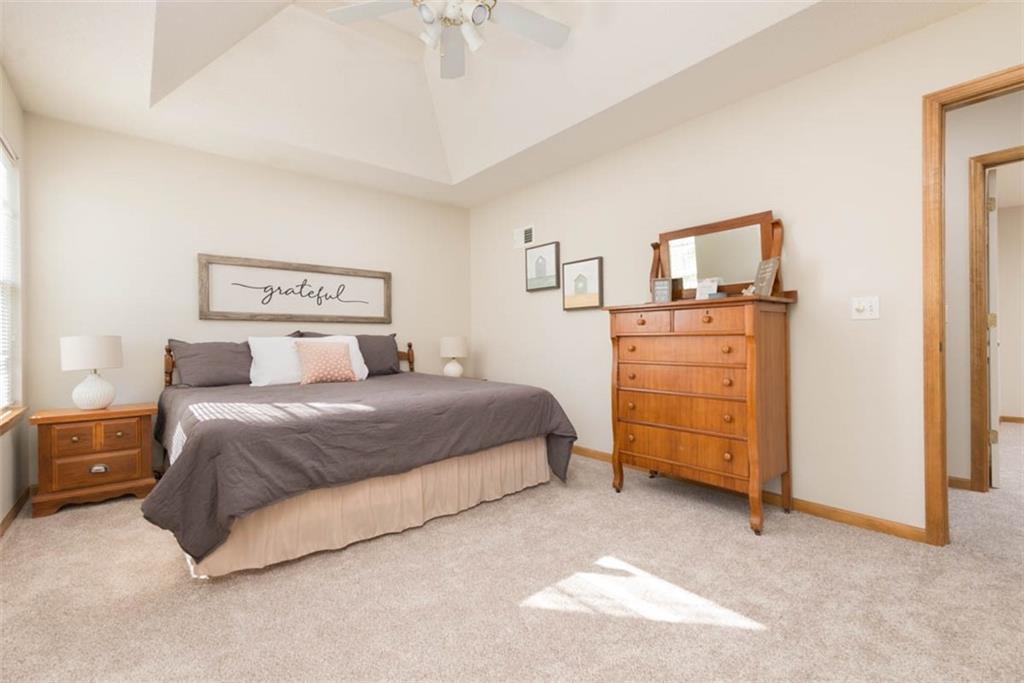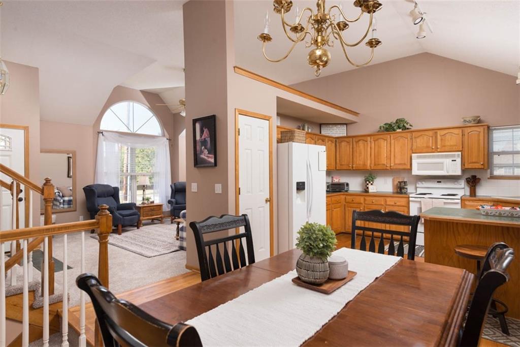 Welcome home to this inviting 3-bedroom, 2.5-bath beauty tucked inside the sought-after South Hampton neighborhood of Olathe. With over 2,100 finished square feet, this home offers comfortable living with thoughtful updates and timeless character throughout. The great room welcomes you with soaring vaulted ceilings, a cozy fireplace, and built-in shelving that adds warmth and charm. Natural light pours through large windows, creating a bright, inviting space that feels instantly like home. The open dining area flows effortlessly to the deck, offering an easy transition for morning coffee or casual entertaining. The kitchen is both functional and full of potential, featuring generous cabinet space, a breakfast bar, pantry, and views of the backyard. Upstairs, the spacious primary suite provides a quiet retreat with a private en suite bath and fantastic walk-in closet,, while two additional bedrooms and a full hall bath offer space for family, guests, or a home office. All new carpet upstairs! Downstairs, the finished lower level provides a comfortable second living space, perfect for a movie room, game area, or home gym, plus a half bath and plenty of storage. Step outside to the deck overlooking the fenced backyard, an ideal setting for evening relaxation or playtime with pets. Located in a peaceful, established neighborhood close to parks, trails, and all that south Olathe has to offer, this home brings comfort, convenience, and opportunity together in one welcoming package. Don’t miss your chance to own this fantastic home in one of the area’s most sought-after communities!