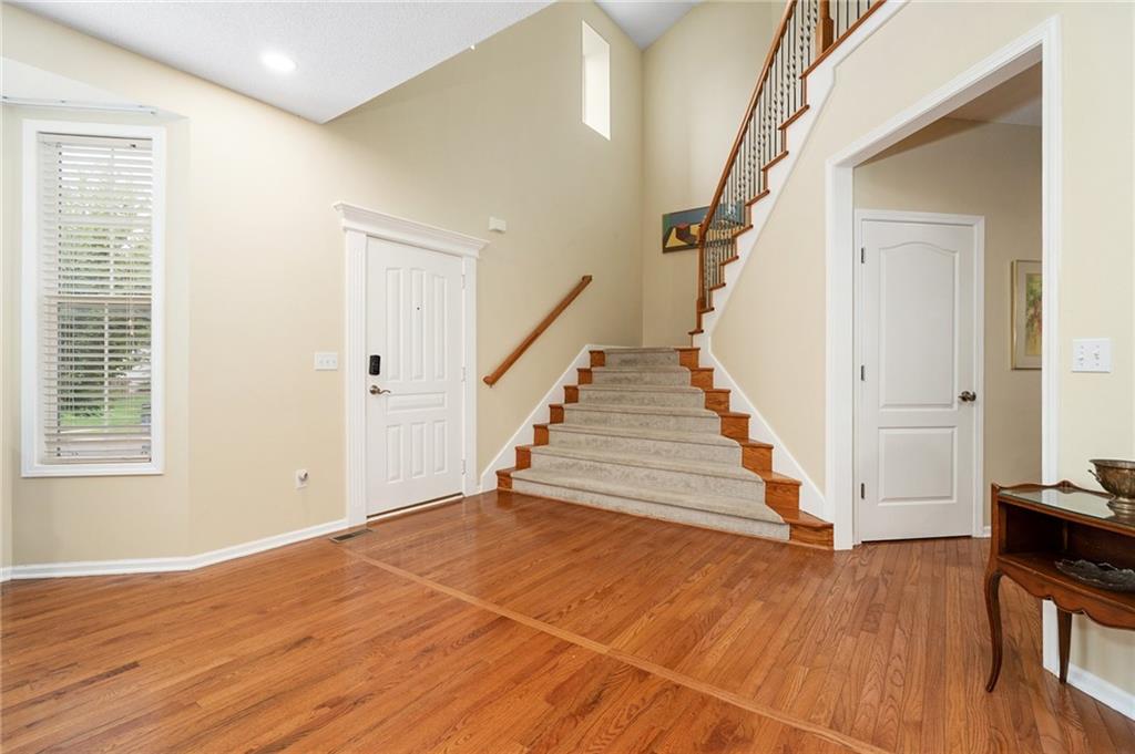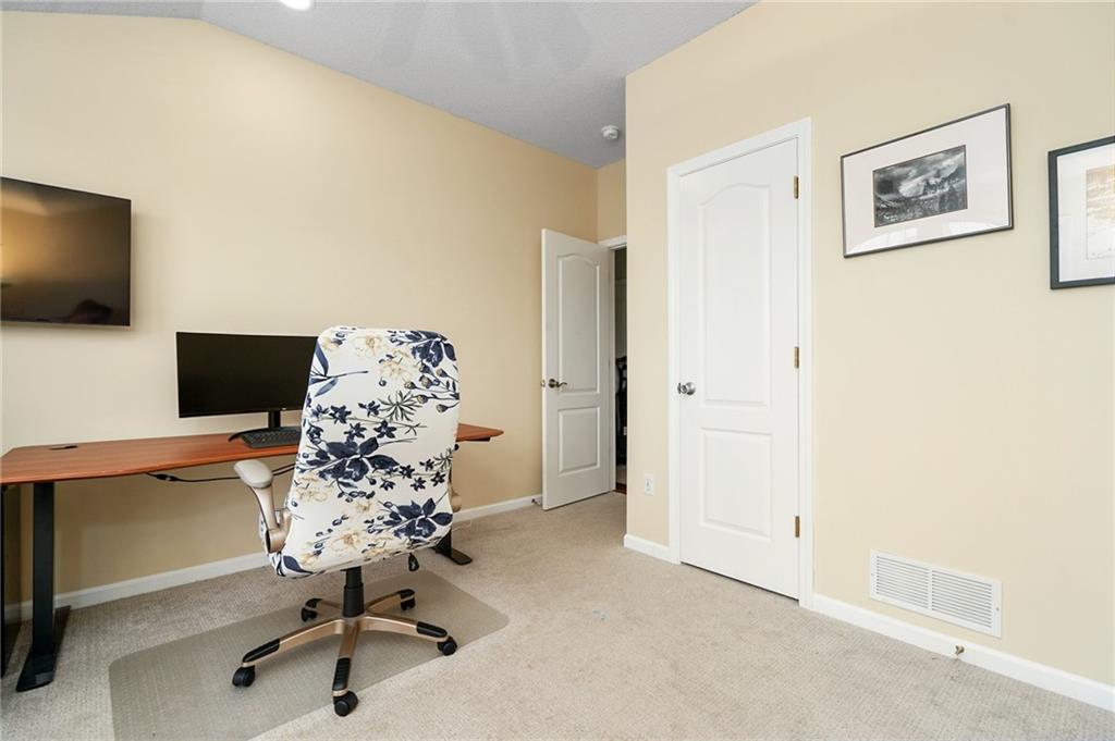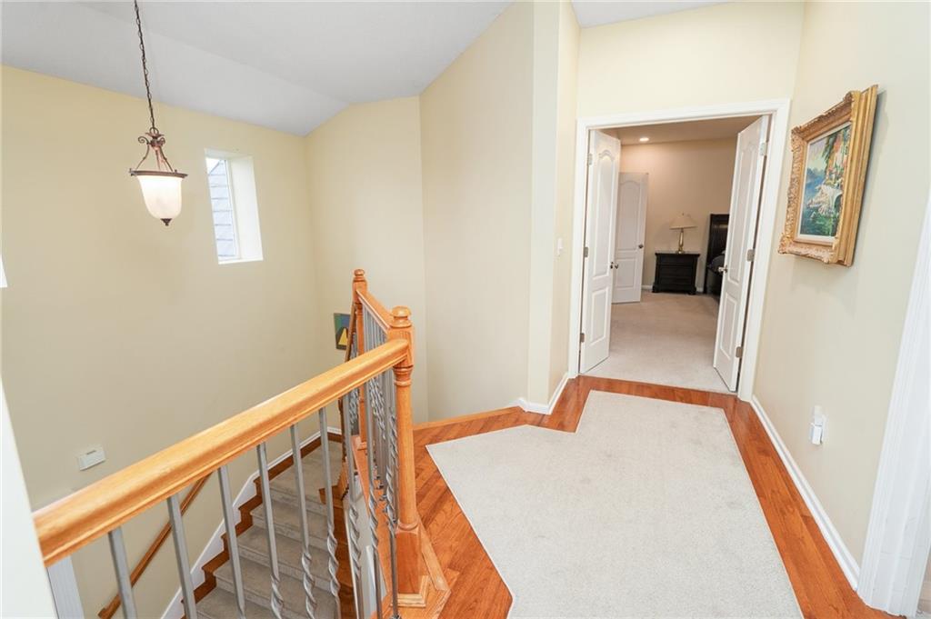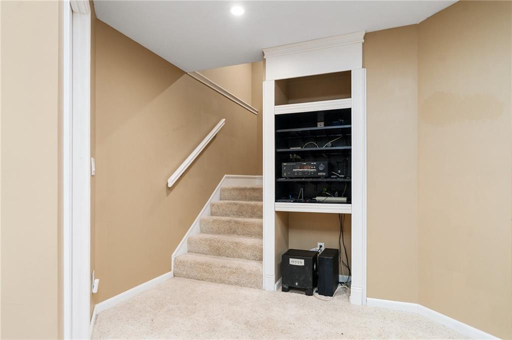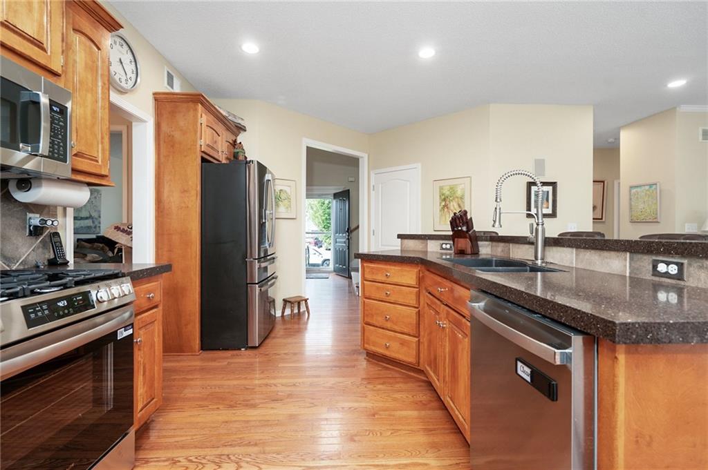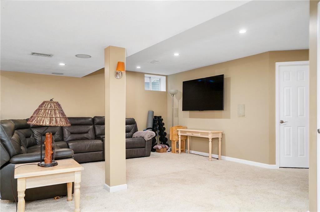 Discover this beautifully maintained home in an unbeatable location close to dining, shopping, and entertainment. The ultra-durable metal roof (installed in 2018) provides both style and peace of mind. SO MUCH NEW...carpet on top two floors, kitchen appliances (range, microwave, dishwasher), added can lights, new deck, gas line for grill and interior paint. Main floor has hardwood floors throughout much of the main level and a thoughtfully designed layout featuring a formal dining room with option office, an eat-in kitchen, and a cozy family room with a fireplace. Upstairs, you’ll find four spacious bedrooms, including an oversized primary suite with a large walk-in closet and dual vanities. The home is equipped with dual wireless thermostats, allowing you to control the temperature on each level with ease. The finished lower level offers even more living space — complete with a wet bar and media room - perfect for entertaining or relaxing. Additional highlights include rain-sensor sprinklers and prepaid lawn care service through the end of the year. Enjoy neighborhood amenities such as a community swimming pool, play area, and scenic walking trails — all in a location that can’t be beat!