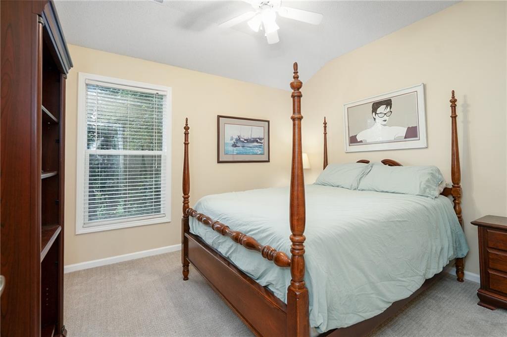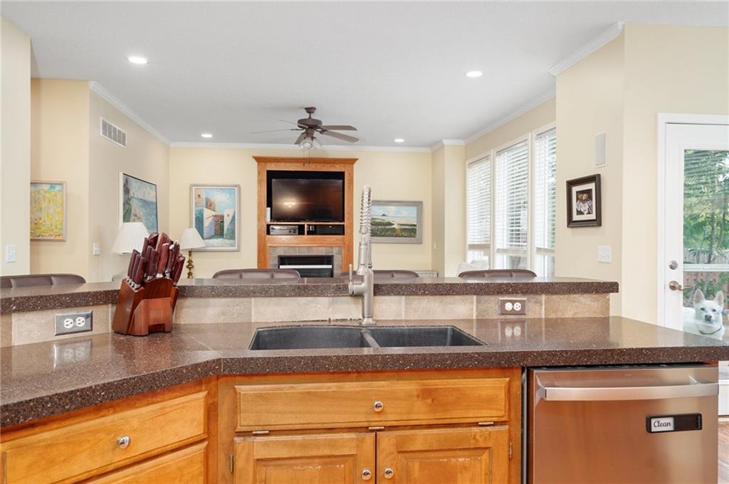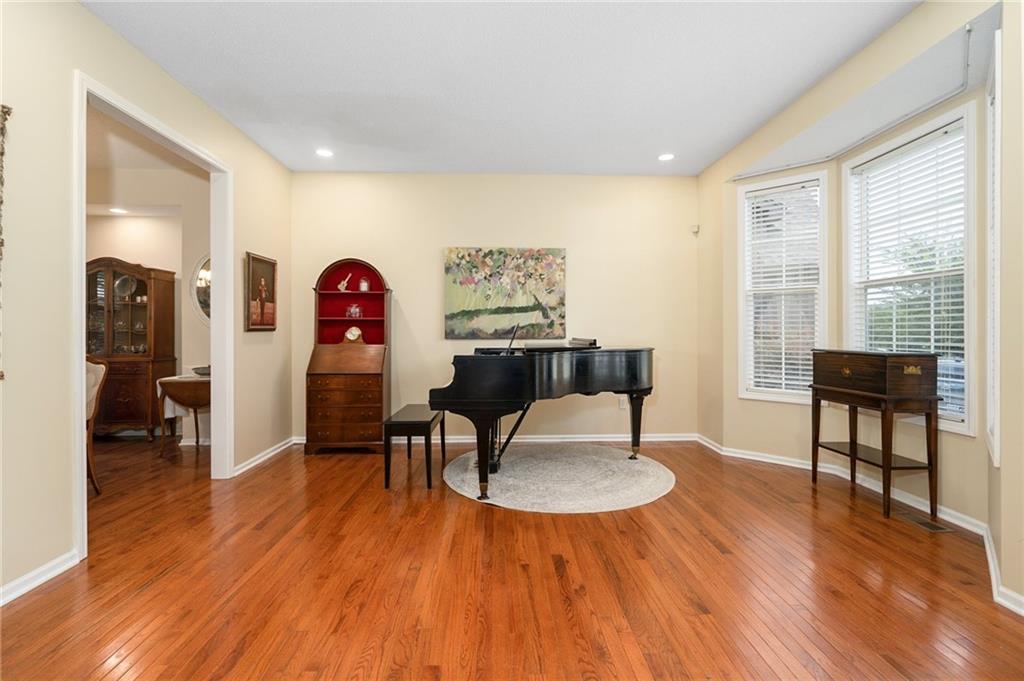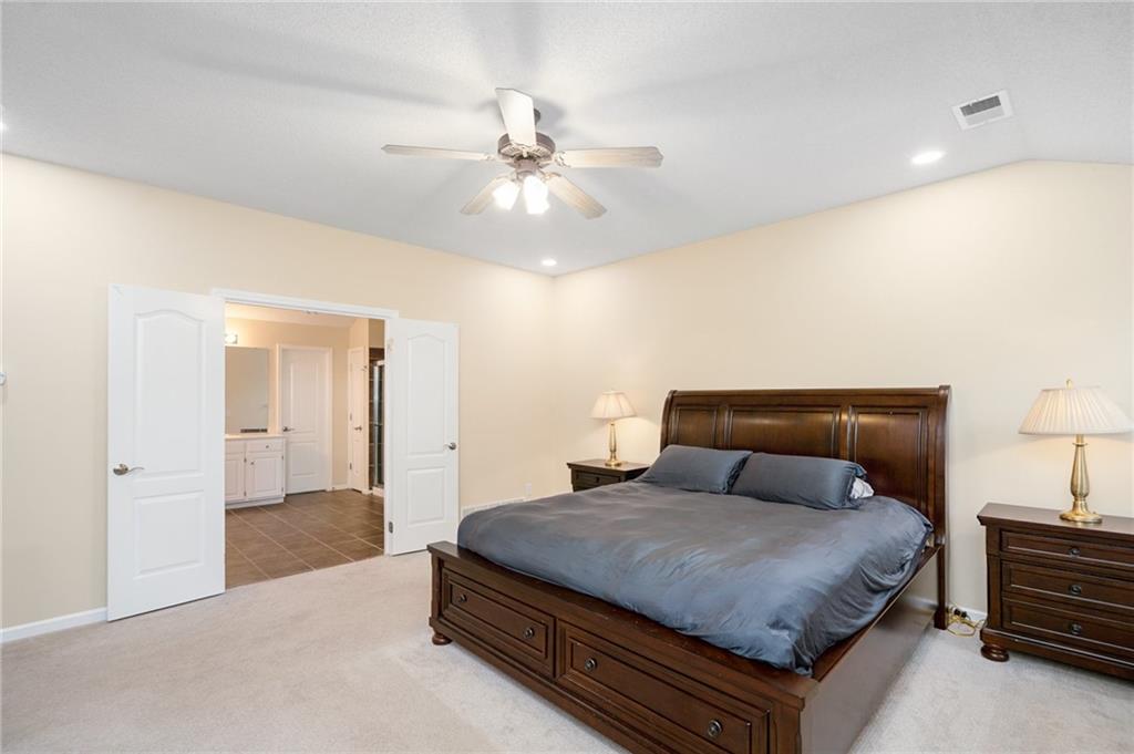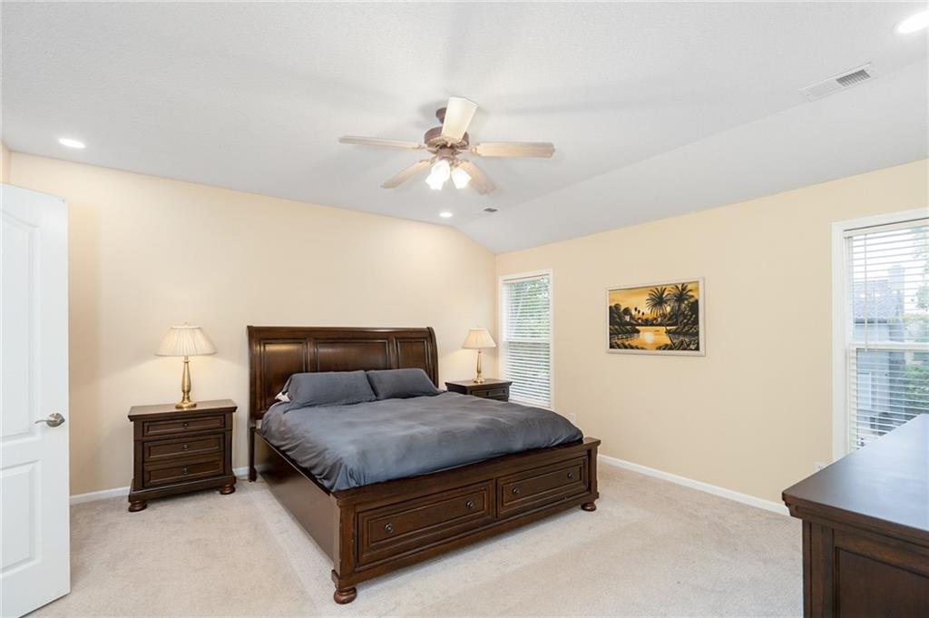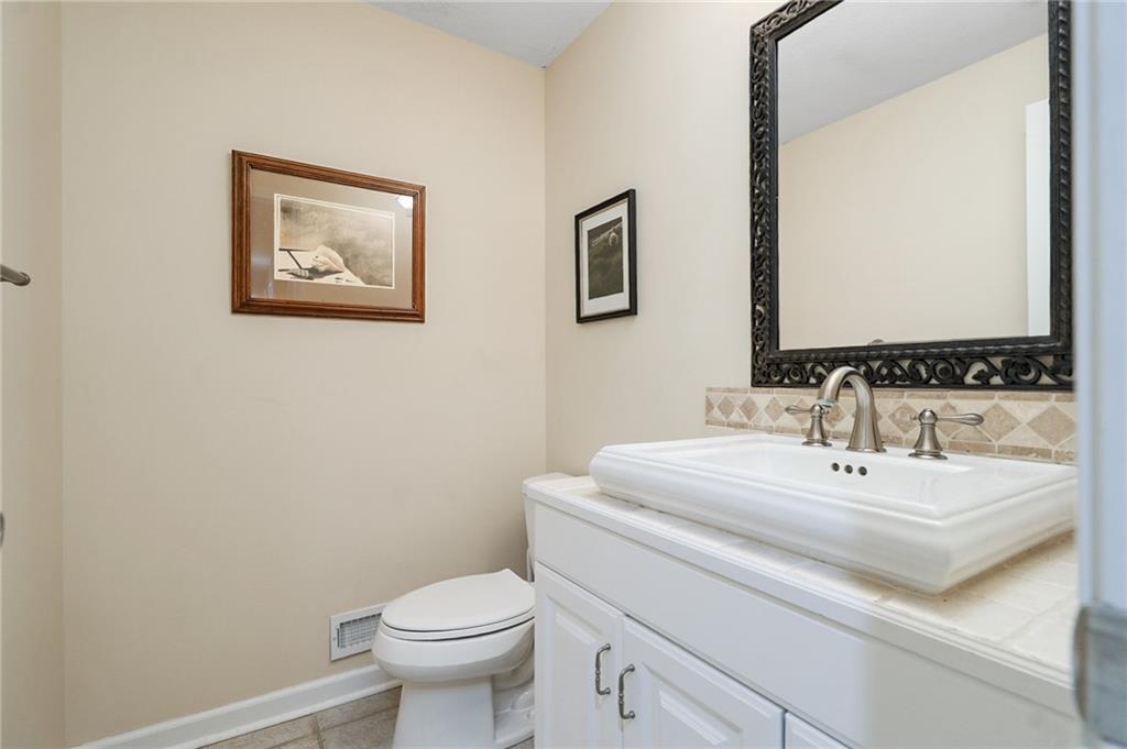 Discover this beautifully maintained home in an unbeatable location close to dining, shopping, and entertainment. The ultra-durable metal roof (installed in 2018) provides both style and peace of mind. SO MUCH NEW...carpet on top two floors, kitchen appliances (range, microwave, dishwasher), added can lights, new deck, gas line for grill and interior paint. Main floor has hardwood floors throughout much of the main level and a thoughtfully designed layout featuring a formal dining room with option office, an eat-in kitchen, and a cozy family room with a fireplace. Upstairs, you’ll find four spacious bedrooms, including an oversized primary suite with a large walk-in closet and dual vanities. The home is equipped with dual wireless thermostats, allowing you to control the temperature on each level with ease. The finished lower level offers even more living space — complete with a wet bar and media room - perfect for entertaining or relaxing. Additional highlights include rain-sensor sprinklers and prepaid lawn care service through the end of the year. Enjoy neighborhood amenities such as a community swimming pool, play area, and scenic walking trails — all in a location that can’t be beat!