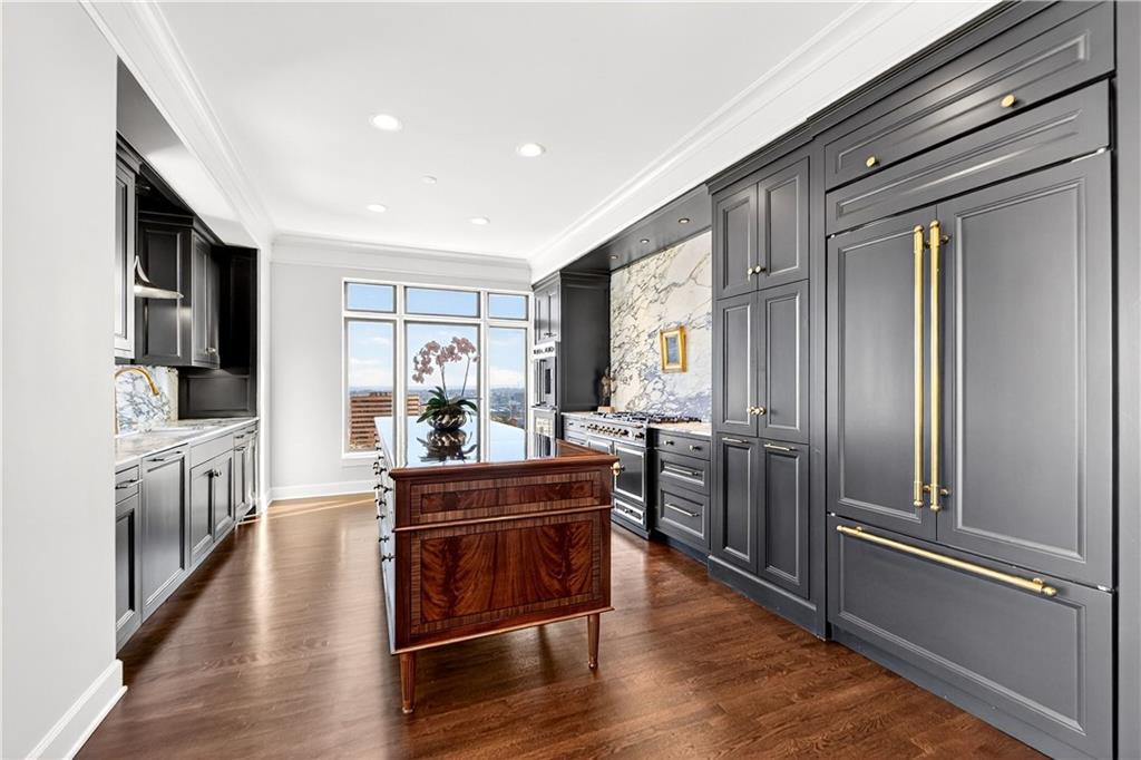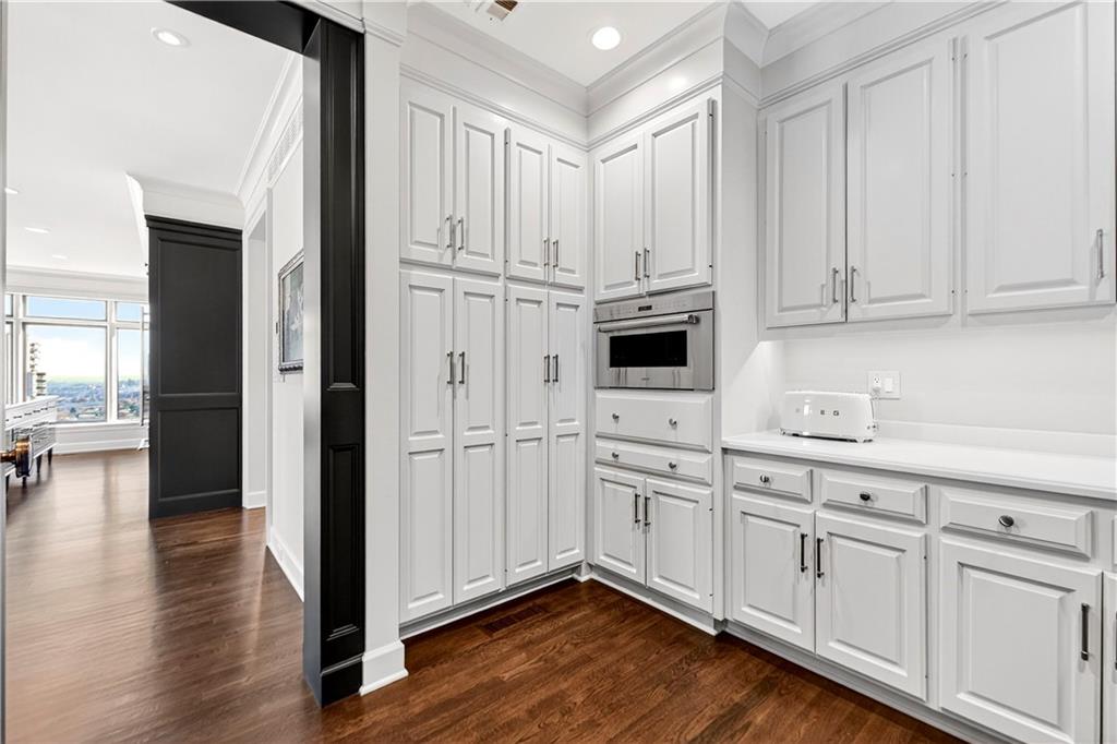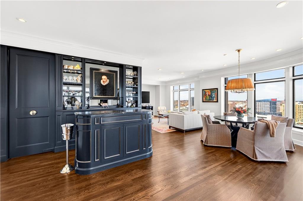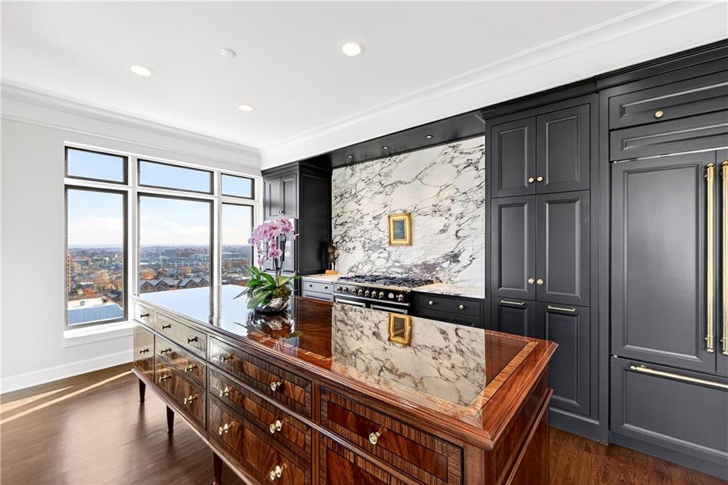Experience elevated living in this beautifully reimagined 2-bedroom, 2.5-bath condominium perched on the 14th floor of the prestigious Alameda Towers. Every surface has been thoughtfully updated, showcasing impeccable craftsmanship and designer finishes throughout. The completely renovated kitchen is a chef’s dream! It features custom Bryne cabinetry and a one of a kind handcrafted center island featuring marble slab countertops. A 5-burner La Cornue range with double ovens anchors the space, complemented by additional Viking double ovens, making this a true delight for entertaining. The sleek butler’s pantry includes a new ice maker and wine fridge, and a reconfigured layout opens the kitchen to the spacious family room with a custom bar—perfect for entertaining. Fresh paint throughout, including a lacquered Monrose-painted entryway, enhances the sophisticated ambiance. The expansive dining room boasts a new statement light fixture, while the office is bright and functional with built-ins and large windows. The oversized primary suite offers hardwood floors, a completely renovated marble bathroom with mirrored vanities, abundant built-ins, and a massive custom closet. The secondary bedroom also features hardwoods and a newly refreshed en-suite bath with designer fabric walls. A stylish half bath adds both convenience and comfort—perfect for guests. Washer and dryer remain for convenience. Every inch of this residence has been modernized with quality and style—offering an exceptional blend of luxury, comfort, and location just steps from the Country Club Plaza.