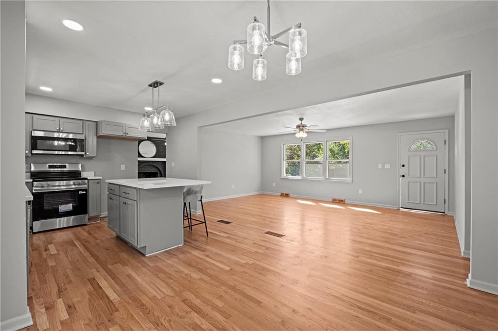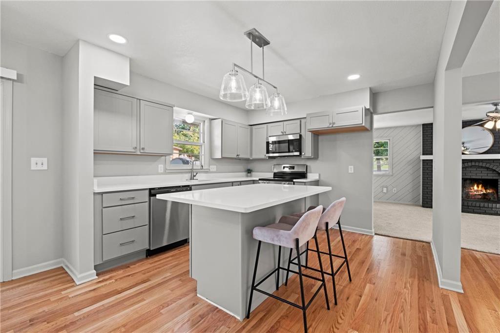 Welcome to this beautifully updated raised ranch situated on a spacious corner lot in the heart of Gladstone! Enjoy all-new landscaping and a freshly seeded lawn that enhance the home’s charming curb appeal. Inside, you’ll find three bedrooms and two full bathrooms with convenient main-level laundry. The light-filled living areas include two separate living spaces—one featuring a cozy wood-burning fireplace perfect for relaxing evenings. The completely renovated kitchen showcases stainless steel appliances, modern cabinetry, and stylish new lighting throughout. Every detail has been thoughtfully updated to provide comfort, efficiency, and modern style. If you’ve been looking for one-level luxury living without the high price tag, this is it! Located in Gladstone—where you’ll love the community amenities and no earnings tax—this move-in-ready home offers the perfect blend of value, design, and convenience.