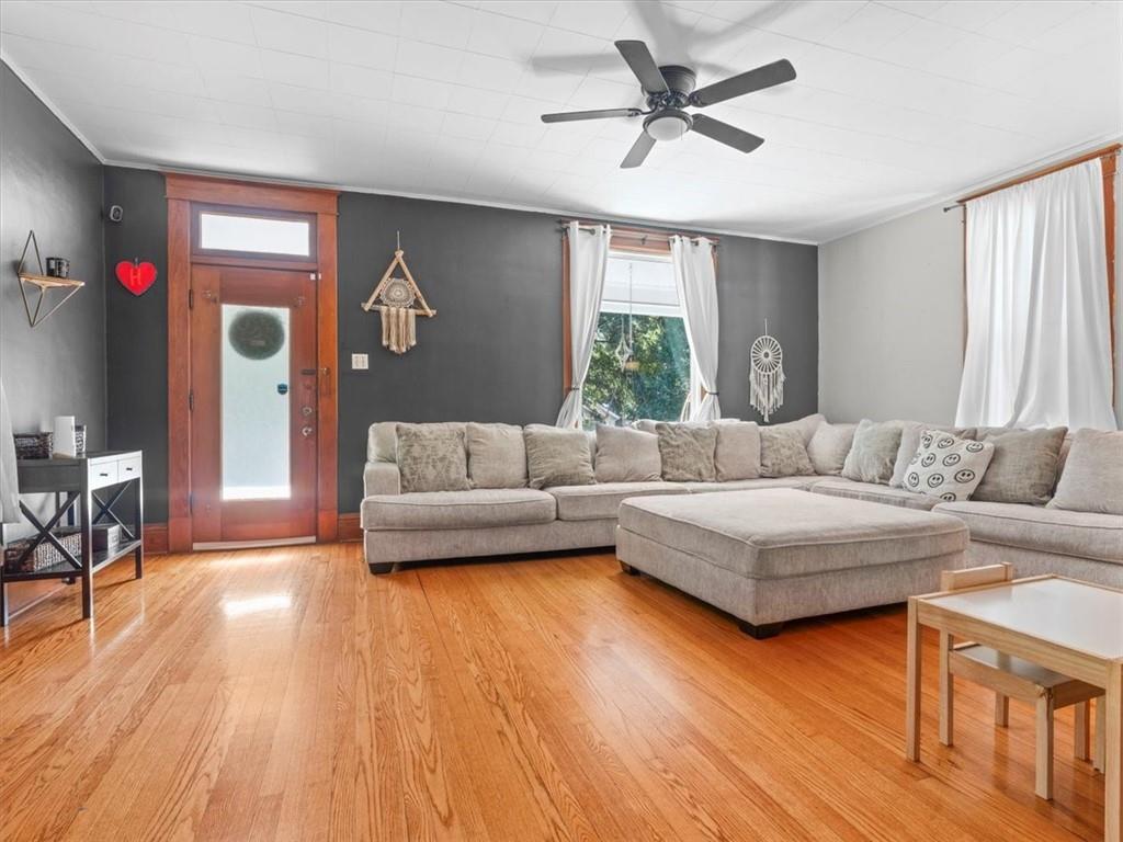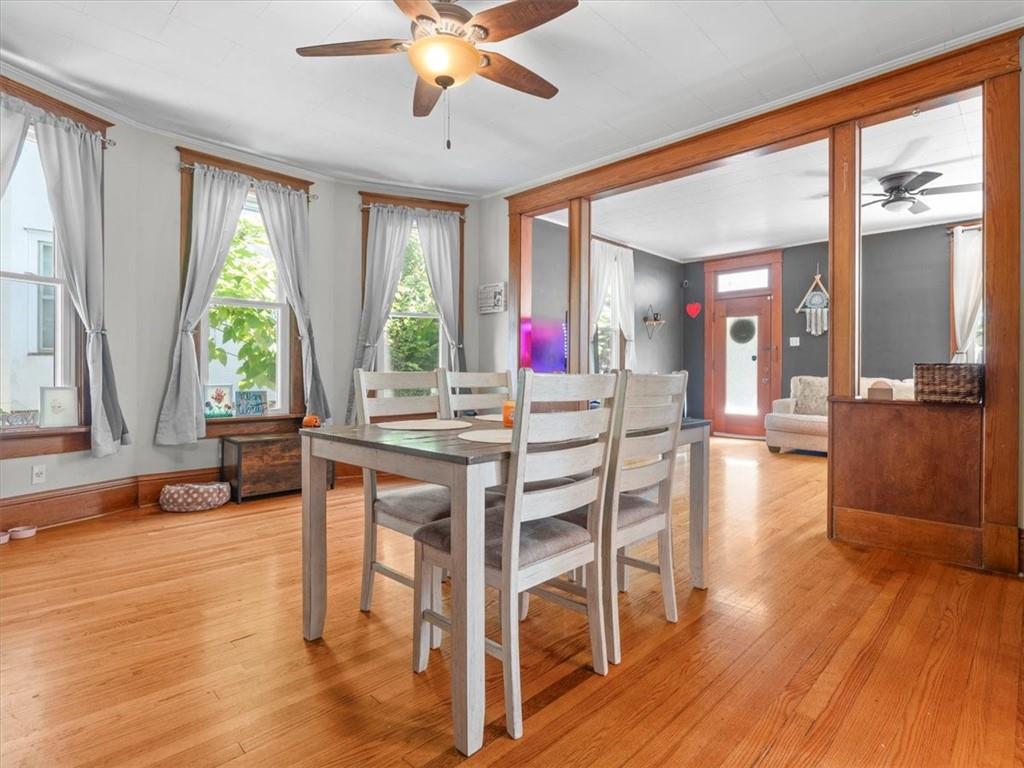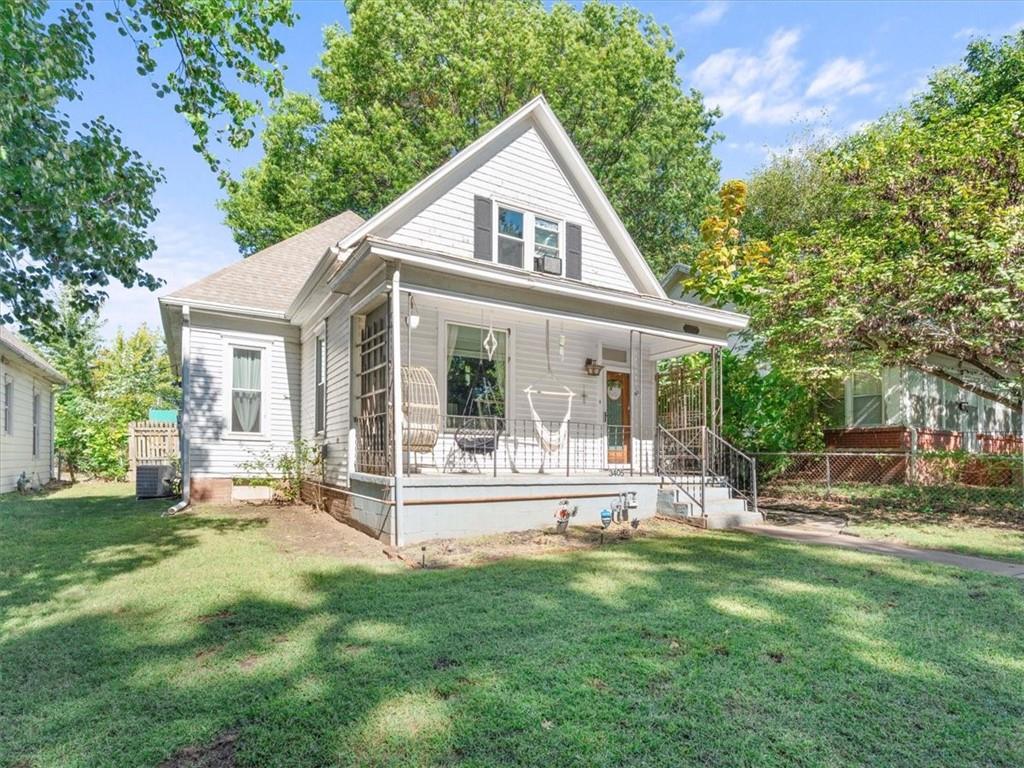 Classic charm meets everyday convenience in this inviting home filled with character. A large covered front porch welcomes you into spacious, light-filled rooms, including a comfortable living room and formal dining area. With three bedrooms, one bath, and main-floor laundry, the layout offers easy functionality. Outside, you’ll find a fenced yard and a detached garage—ideal for storage or hobby space. This property combines vintage warmth with modern comfort in a great central location.