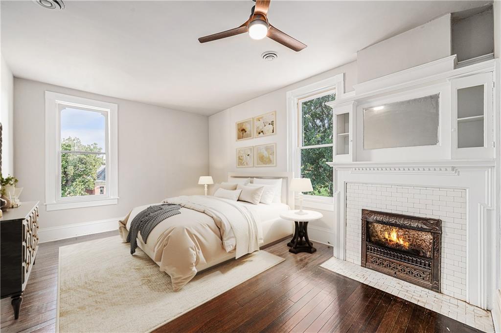 Step into timeless elegance with this stunning 1876 brick-built mansion, a true masterpiece. Boasting 9 spacious bedrooms—including 4 with their own original fireplaces— and a private balcony off the primary suite, this home blends rich history with modern comforts in a way few properties can. With 4 full bathrooms and 2 half baths, as well as laundry on three levels, convenience meets grandeur at every turn. The refinished original hardwood floors and newly restored original windows throughout showcase the home's architectural integrity, while a massive kitchen outfitted with brand-new stainless-steel appliances brings a modern edge to this historic gem. Designed for hosting and entertaining, the home features a grand parlor, a formal dining room, and a warm and inviting great room, each graced with its own elegant fireplace. Step outside and you'll find breathtaking views that are among the best in the city, surrounded by gorgeous historic homes, churches, and buildings. Located just steps from vibrant nightlife and top-rated local restaurants, this property offers the rare blend of privacy, charm, and urban convenience. Whether you're seeking a one-of-a-kind private residence or an incredible opportunity to create a boutique inn or event venue, this extraordinary estate is ready to impress. Previous appraisal was $650k! Appraisal is available upon request.