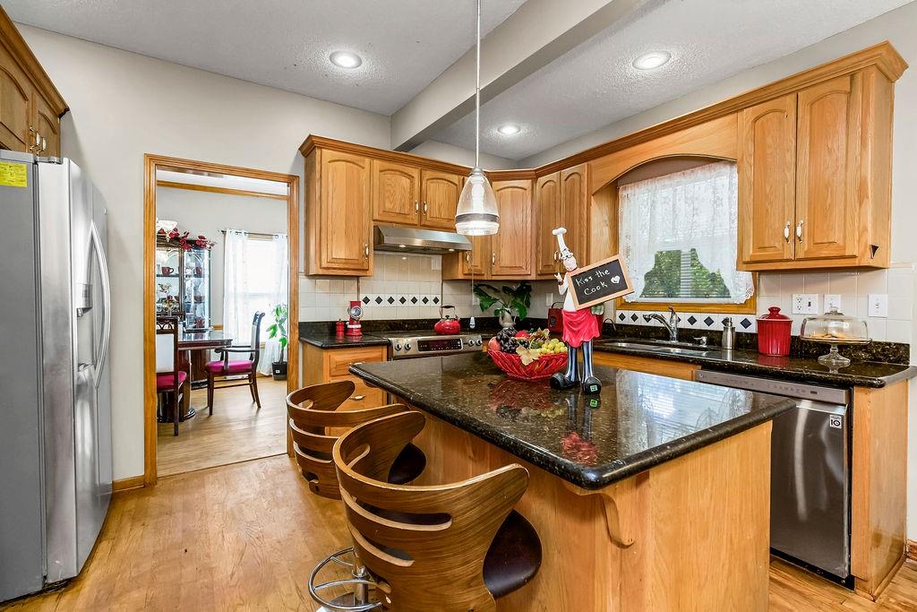 This home truly checks all the boxes! Nestled on a quiet cul-de-sac that backs to serene woods, this spacious home is made for entertaining—indoors and out. Step inside to soaring ceilings and skylight in the Great Room that create an instant “wow” factor. Enjoy a formal dining room and a bright sunroom that opens to an expanded deck, perfect for gatherings. The kitchen is both stylish and functional, featuring hardwood floors, granite countertops, stainless steel appliances, an island, and a pantry. The inviting hearth room is filled with natural light and includes a built-in bar. Just off the hearth room, you’ll find another sunroom or home office, complete with skylights and a full bath. A convenient half bath is also located on the main level. Upstairs, the spacious primary suite offers a huge private bath with double sinks, a walk-in shower, and multiple closets—including a walk-in. Two additional bedrooms are upstairs as well with new carpet, one with its own covered deck! Laundry is also located on the bedroom level for easy access. The walk-out basement adds even more space with a large rec room, full bath, and a fourth bedroom with a daylight window. You’ll also find abundant storage and a workshop area. The outdoor space is a showstopper—two decks, an expanded patio, a charming pergola, and peaceful wooded views that make every day feel like a getaway. Hurry—homes like this don’t stay hidden for long!