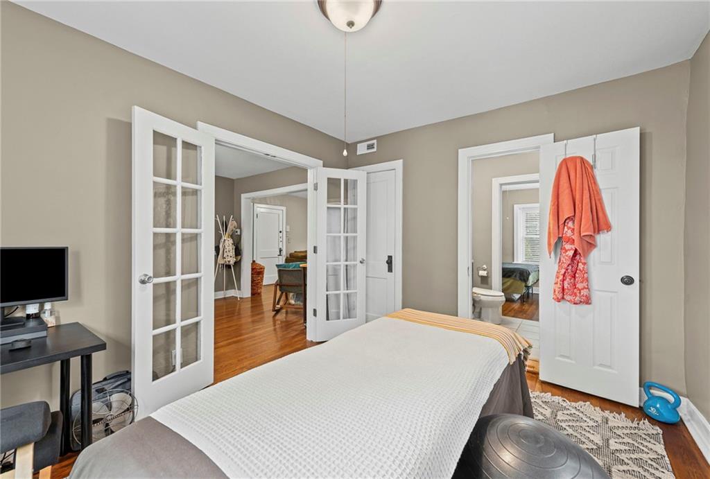 Absolutely fetching condo in the heart of midtown! Located between the Plaza and downtown, just steps from Westport and West 39th districts, this beauty could be the most walkable home in the entire city! Classic charm with a modern touch, gleaming hardwood floors, covered front porch (with a view!), covered back deck, gated parking, laundry facilities and private storage in the basement. Open and spacious with ample natural light- you have to see it! Well maintained, it outshines other units in the building! Fresh paint, new HVAC (6/25), and a nearly football-field-sized community green space secured by a fence! You don't want to miss this one!