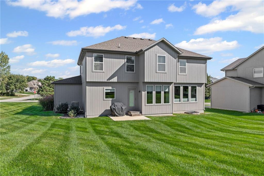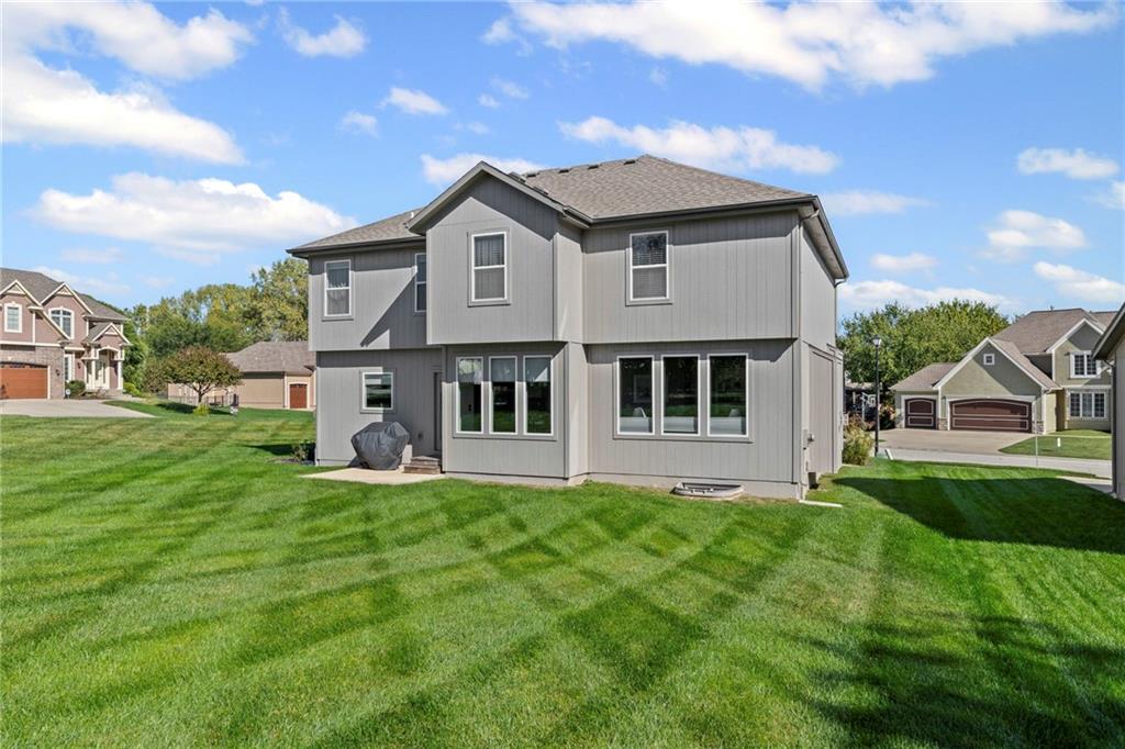Spacious 4-Bedroom Home on a Large Corner Lot with Modern Upgrades! This stunning 4-bedroom, 2.5-bathroom home offers the perfect blend of style, functionality, and comfort. Situated on a large corner lot, it features a huge backyard complete with a covered firepit ideal for entertaining or relaxing outdoors. Natural light fills the open floor plan, highlighting gorgeous hardwood floors and seamless spaces designed for easy living. The heart of the home is the large kitchen, a generous island, walk-in pantry, and plenty of storage for all your culinary needs. The gas fireplace adds warmth and charm to the living area, while the thoughtfully designed mudroom with built-in desk keeps life organized. Beautiful main-level office featuring elegant French doors and large windows that fill the space with natural light—perfect for working from home or managing daily tasks in comfort and style. Laundry is conveniently located to serve all bedrooms, and the spacious primary suite includes a large walk-in closet. Additional highlights include a 3-car garage, sprinkler system to maintain a beautiful yard, and an unfinished basement offering ample storage or potential for a custom living space. Fresh exterior paint in 2024 completes the picture, making this home move-in ready and full of appeal. Enjoy a home where every detail is designed for comfort, convenience, and style!
