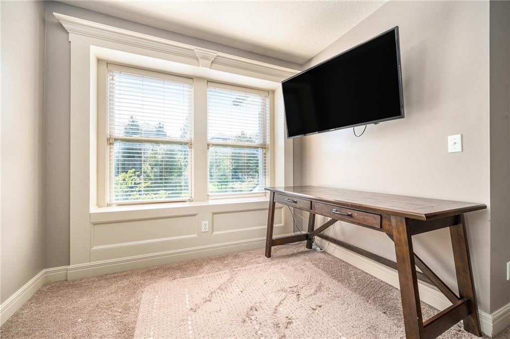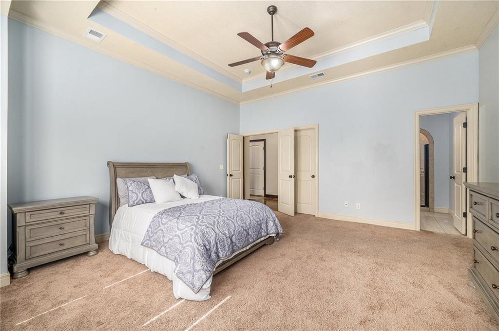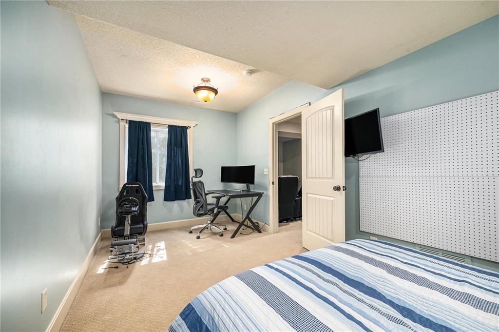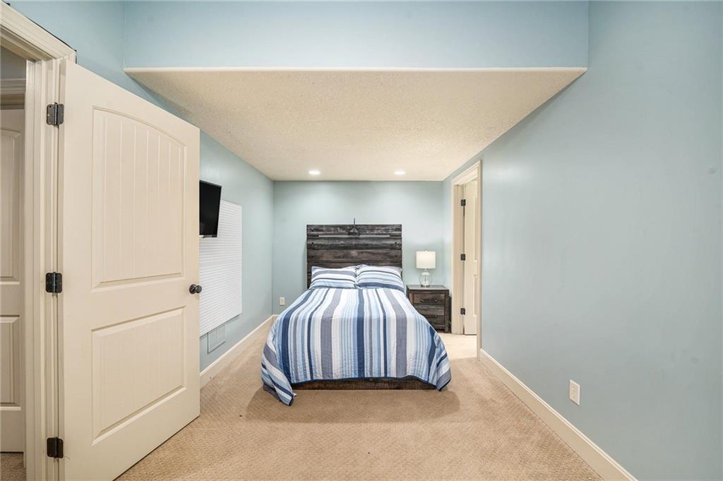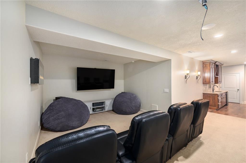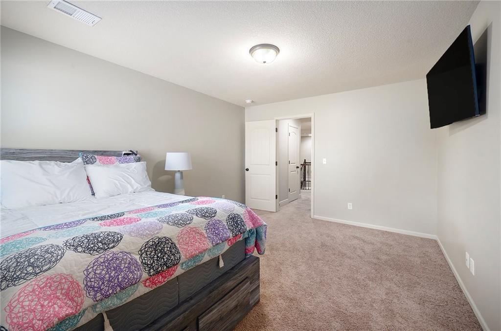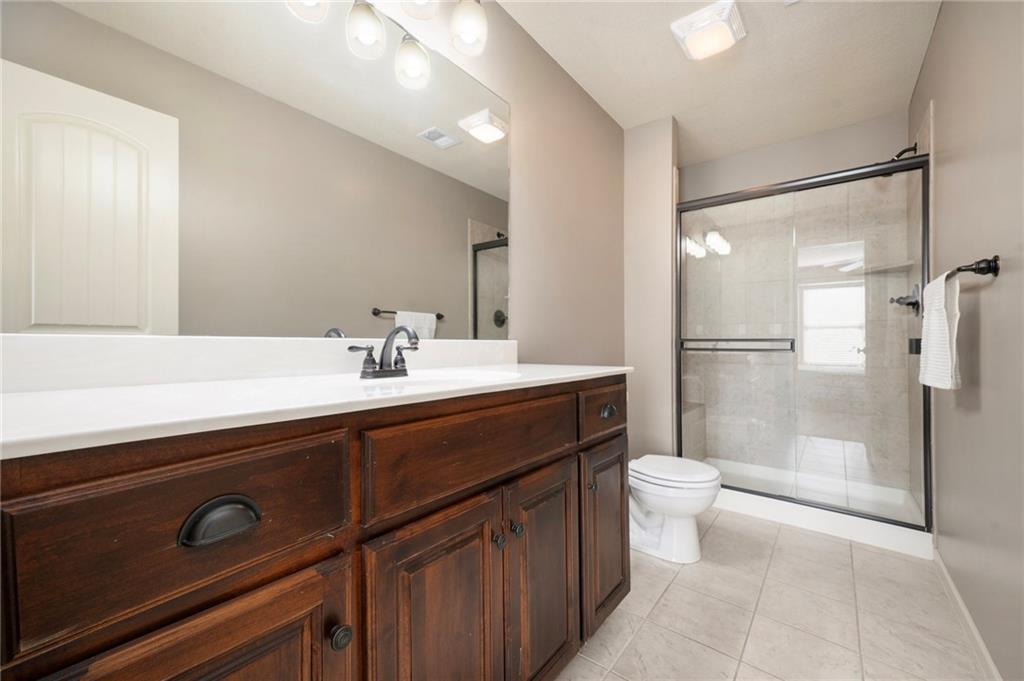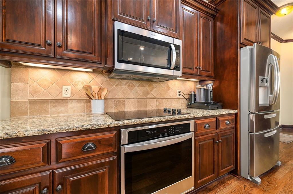 Eyes instantly draw up to the rich tone of the beamed ceilings in the formal dining room and hearth. A fireplace anchors both the living room and hearth adding a cozy touch to both entertaining spaces. Delightful details like a stacked stone accent wall, plantation shutters, double staircase, laundry at bedroom level and basement, a main floor office & two primary bedroom options make this residence both stylish and functional. The open concept great room that encompasses both the kitchen and hearth is anchored by a large kitchen island with seating–perfect for a quick morning breakfast. Newer stainless steel appliances include the oven, stove and dishwasher. Upstairs bedrooms all have walk-in closets including the oversized primary closet that would allow for a center island, maximizing organization, and also connects to the laundry room. The finished basement has a bedroom, full bath and is perfect for hosting watch parties–you won’t miss a minute of the action with food and drink stocked at the wet bar! Landscaping runs along the curve of the back patio elevating it into a picturesque and private setting for entertaining or unwinding in the hot tub. Well-maintained with a new roof, exterior paint, and hot water heater replacement within the last five years. The Coffee Creek Crossing community enjoys the prestigious Blue Valley School District as well as dining, shops and recreation at the new Blu Hawk development. Neighborhood amenities include a zero entry swimming pool, play ground, volleyball court and walking trails.
