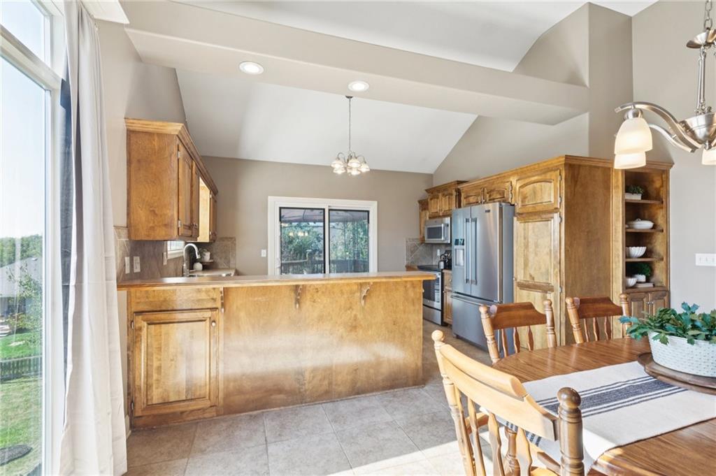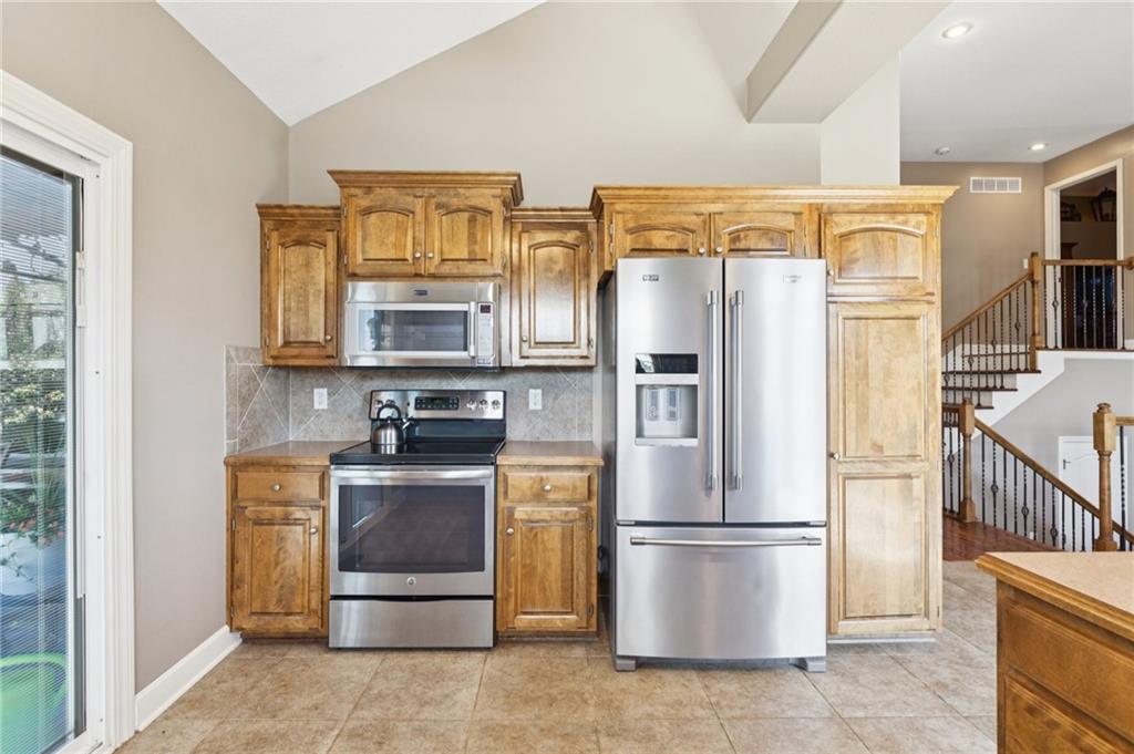 This spacious 2,700+ sq. ft. California split floor-plan offers the flexibility and room today’s buyers are looking for! Featuring 4 bedrooms, 3 full baths, two living areas, and a 3-car garage, there’s space for everyone to spread out and enjoy. Recent updates include an HVAC system less than 3 years old, roof is 4 years old, and tinted windows on the front and back for added energy efficiency and privacy. Step inside to a vaulted living room with hardwood floors, fireplace, and built-ins. The kitchen boasts newer stainless appliances (refrigerator stays), an eat-in dining area, and access to the deck with covered gazebo—perfect for outdoor entertaining. First and second floors include two bedrooms, a full bath, and a primary suite with vaulted ceiling, dual vanity, walk-in closet, jetted tub, and separate shower. Laundry is conveniently located on this level, with washer and dryer included. The walkout basement provides even more living space with a family room, full bath, and additional bedroom—plus a sub-basement offering ample storage. Enjoy the flat, fenced backyard complete with shed, patio and fire pit. Car enthusiasts will love the 3-car garage, finished with epoxy floors, sink, refrigerator, storage area, and a heating unit for year-round comfort. Located in a highly rated Kearney School District, the neighborhood includes a community pool and nearby elementary school, with quick access to groceries, restaurants, and highways. This home checks all the boxes—space, location, and value! Don’t wait to make 904 Crestridge Drive your new home.