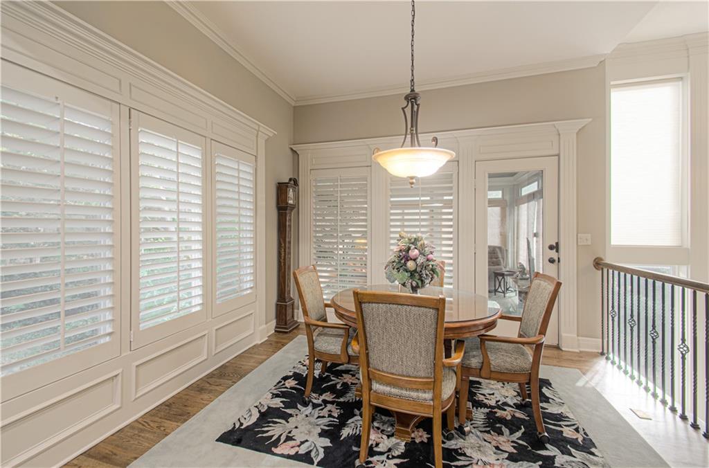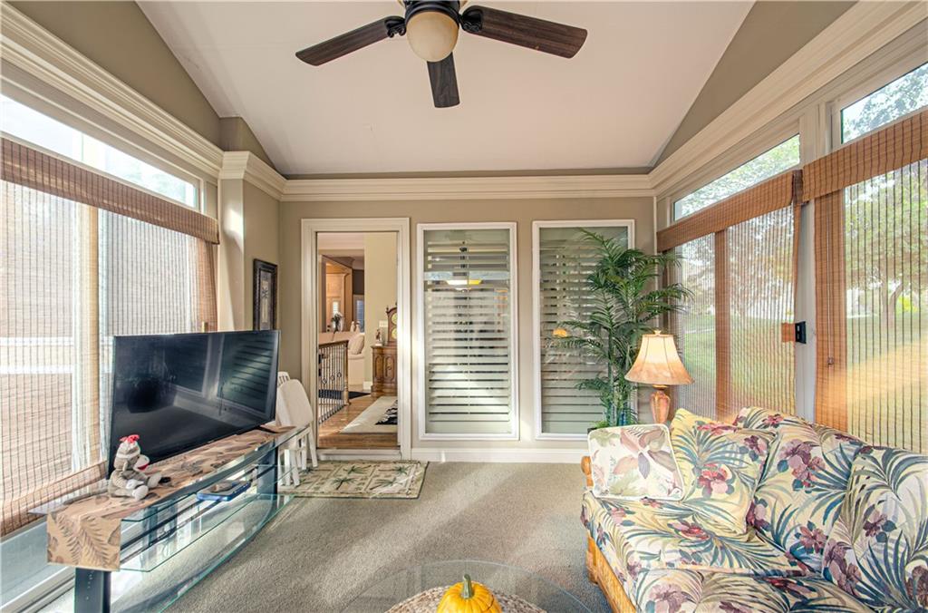 Beautiful Reverse 1.5 Story home in Heather Glen, Maintenance provided community on a cul-de-sac lot. Meticulously maintained!! Upon entering the home you'll be greeted with tall ceilings throughout the main level, 2 Story windows in the great room and stunning crown moulding throughout. In the kitchen you will find hard wood floors, custom cabinets with granite counters, a gas range. Stunning crown moulding throughout, plantation shutters on the windows, a true dining room and a breakfast area. The sellers have added an all seasons room with AC/Heat year round. The primary bedroom features separate owners closets, double vanity, toilet room, soaker tub and shower. The lower level features a recreation room with walk out to patio and yard, full bar, the third bedroom and full bathroom. Large unfinished area for ample amounts of storage. 3 car garage with epoxy flooring.