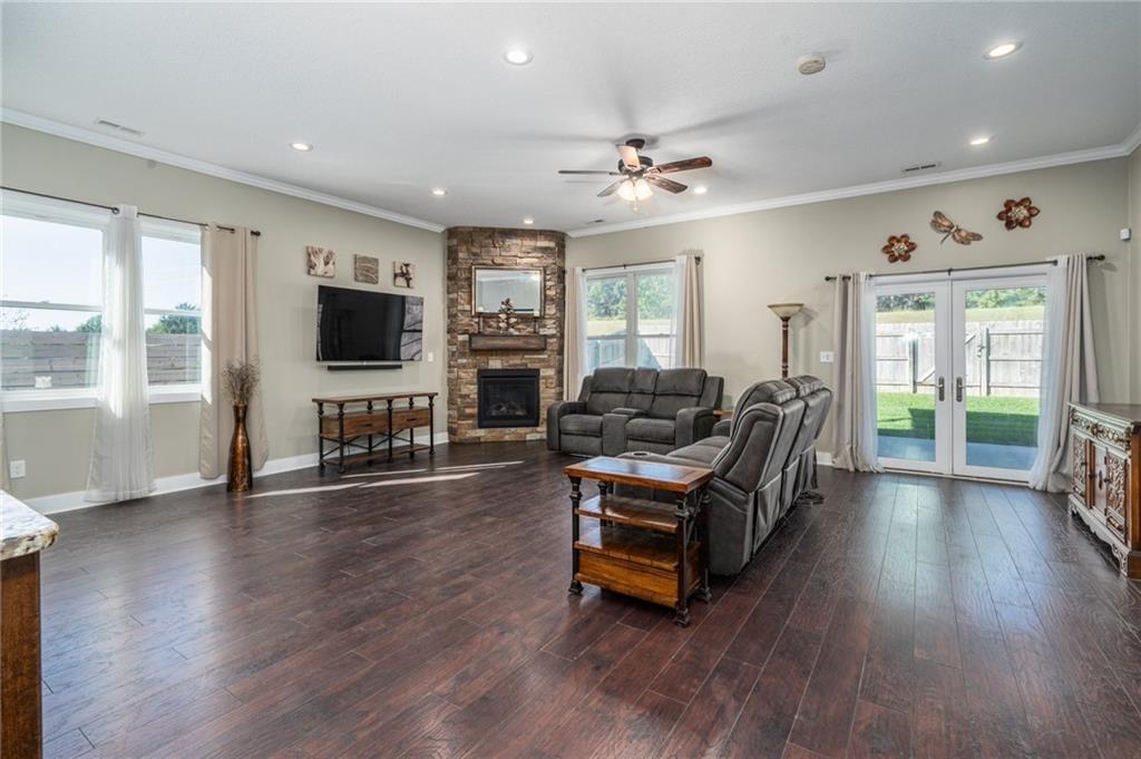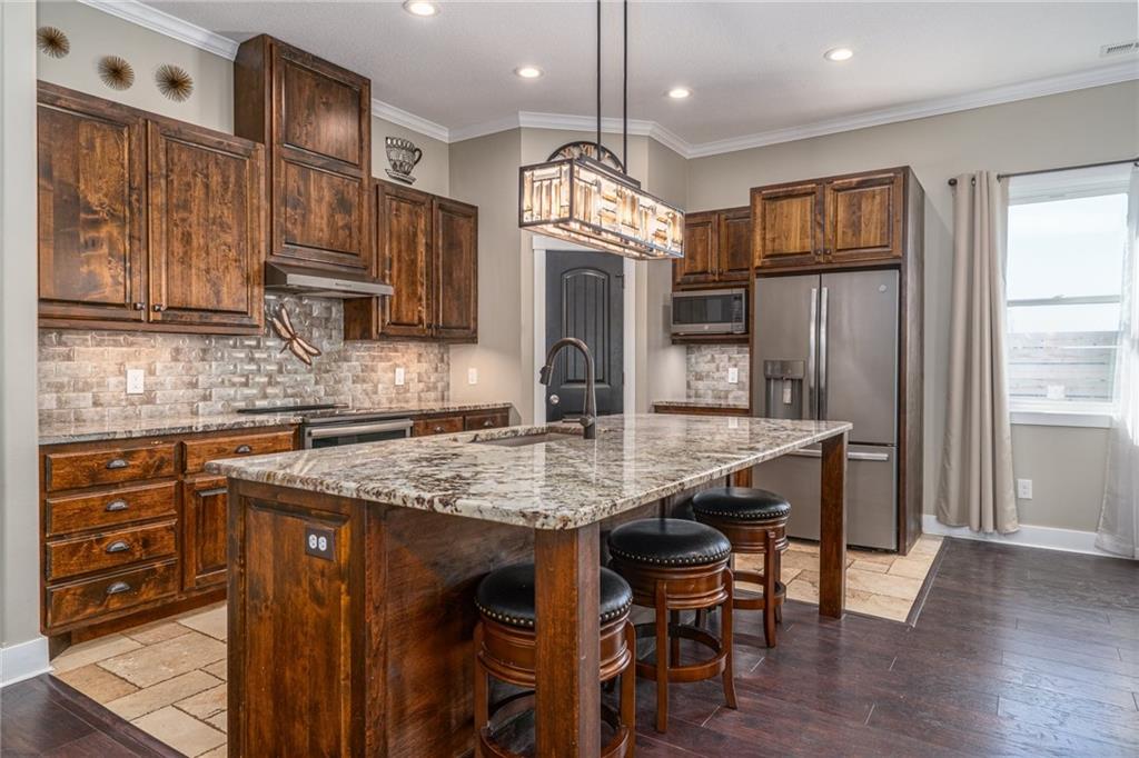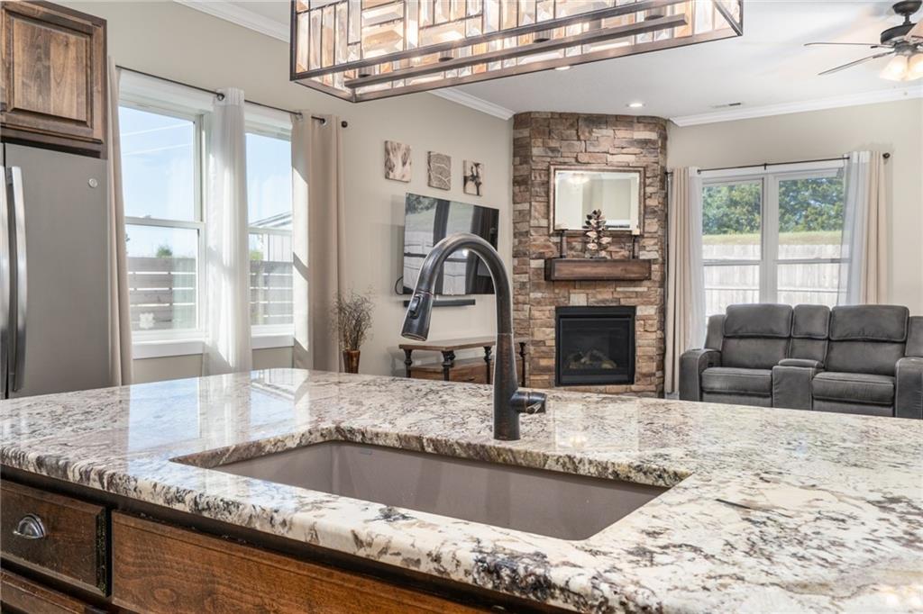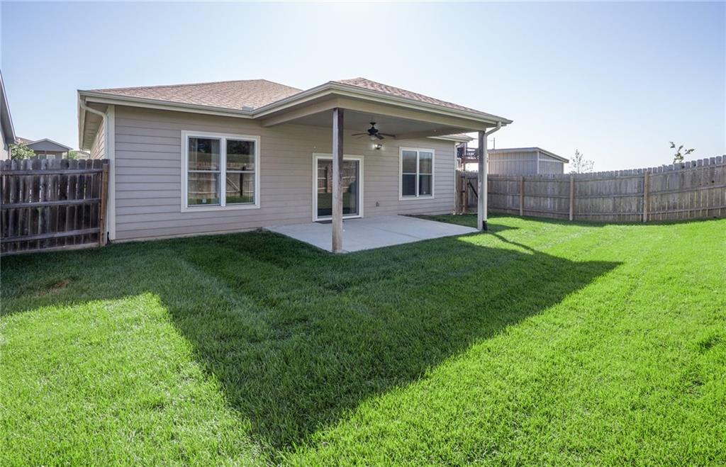 One level ranch with high ceilings and zero entry access. Beautiful master suite with expansive master closet and custom shower. Granite kitchen countertops and ample pantry and high end appliance package. Fenced yard with large covered patio and sprinkler system. Great one level living with no HOA with easy access to walking/biking trails and close proximity to KU and major highways.