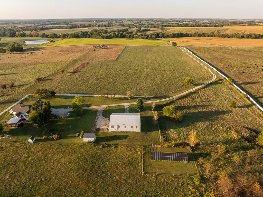 Live out your dreams in the country with this amazing home and shop building in Henry County Missouri. This 17 +/- acre property is conveniently located less than a mile off blacktop Highway O and a short drive to Clinton, Urich, Creighton, and Garden City. Enter the property down the 1,500 foot private driveway that ends at the beautiful home and shop with amazing country views that extend for miles. The 3-bedroom, 2-bathroom ranch house has been incredibly well maintained and taken care. It’s a must see! The home features a large living room with fireplace, formal dining area, spacious eat-in kitchen, oversized master bedroom and bath, and two large additional bedrooms and full bath. The full unfinished basement offers a ton of storage and a built-in safe room. The back deck sets up great for entertaining and overlooks the amazing yard paired with shade trees. Added bonuses include the Generac whole home generator and a three year old house solar system that helps reduce electric bills. It gets even better with the all steel built 50’x60’ shop complete with a concrete work area and electricity! Perfect for storing tools, equipment, and additional vehicles. Also included are two nice outbuilding sheds. The remainder of the property consists of fully fenced and cross fenced pasture ground that sets up great for raising horses and livestock. Talk about the perfect setup for living the country life!