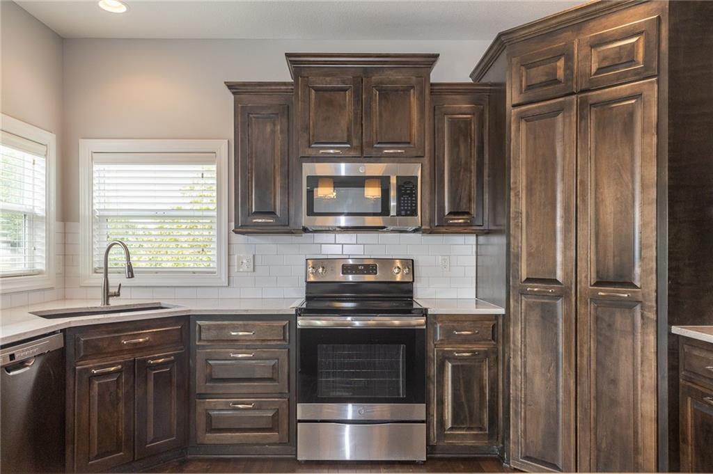 Stunning 5-Bedroom Home in Peaceful South Olathe Neighborhood! Welcome to this beautifully upgraded 5-bedroom, 4.5-bathroom home nestled in a quiet and desirable South Olathe community—just blocks from the local elementary school! Thoughtfully designed and impeccably maintained, this home offers comfort, space, and style at every turn. Step inside to discover high-end finishes throughout and an open, flowing floor plan ideal for everyday living and entertaining. The gourmet kitchen features a spacious walk-in pantry and premium finishes, while the inviting living areas are filled with natural light. The expansive primary suite is a true retreat, boasting a luxurious soaking tub, oversized walk-in shower, and a generous walk-in closet. The fully finished basement is a showstopper, complete with a stylish bar, large entertaining space, and a private bedroom and full bath—perfect for guests or multigenerational living. Enjoy the peace and privacy of the large deck overlooking the backyard and green space behind—ideal for relaxing evenings or weekend gatherings. HOA amenities include a heated swimming pool that's open an extended season, trails, a stocked fishing pond, a playground, and a nice picnic area with a fire pit! Don’t miss your chance to own this exceptional home in one of Olathe’s most peaceful and family-friendly neighborhoods!